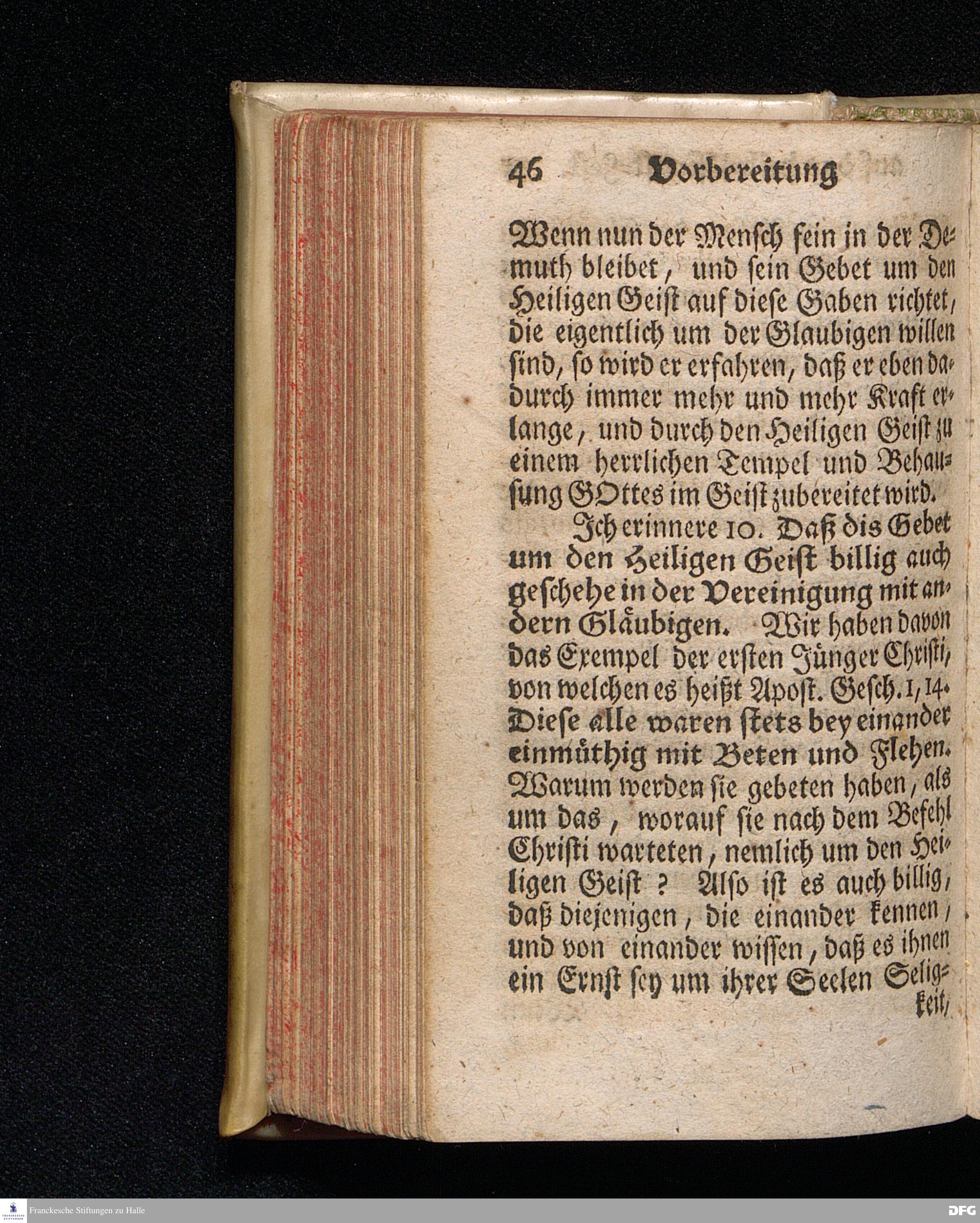 Vorbereitung auf das Heilige Pfingst=Fest / Den 26ten Maji 1719. nach Anleitung der Worte Luc.XI, 13. [Bibelzitat.] in Volckreicher Versammlung Auf dem Wäysen=Hause zu Glaucha an Halle gegeben von August Hermann Francken / SS.Theol.Prof.Past.Vlr.& Scholarcha. Die II.Auflage. HALLE, In Verlegung des Wäysen=Hauses. 1730.
