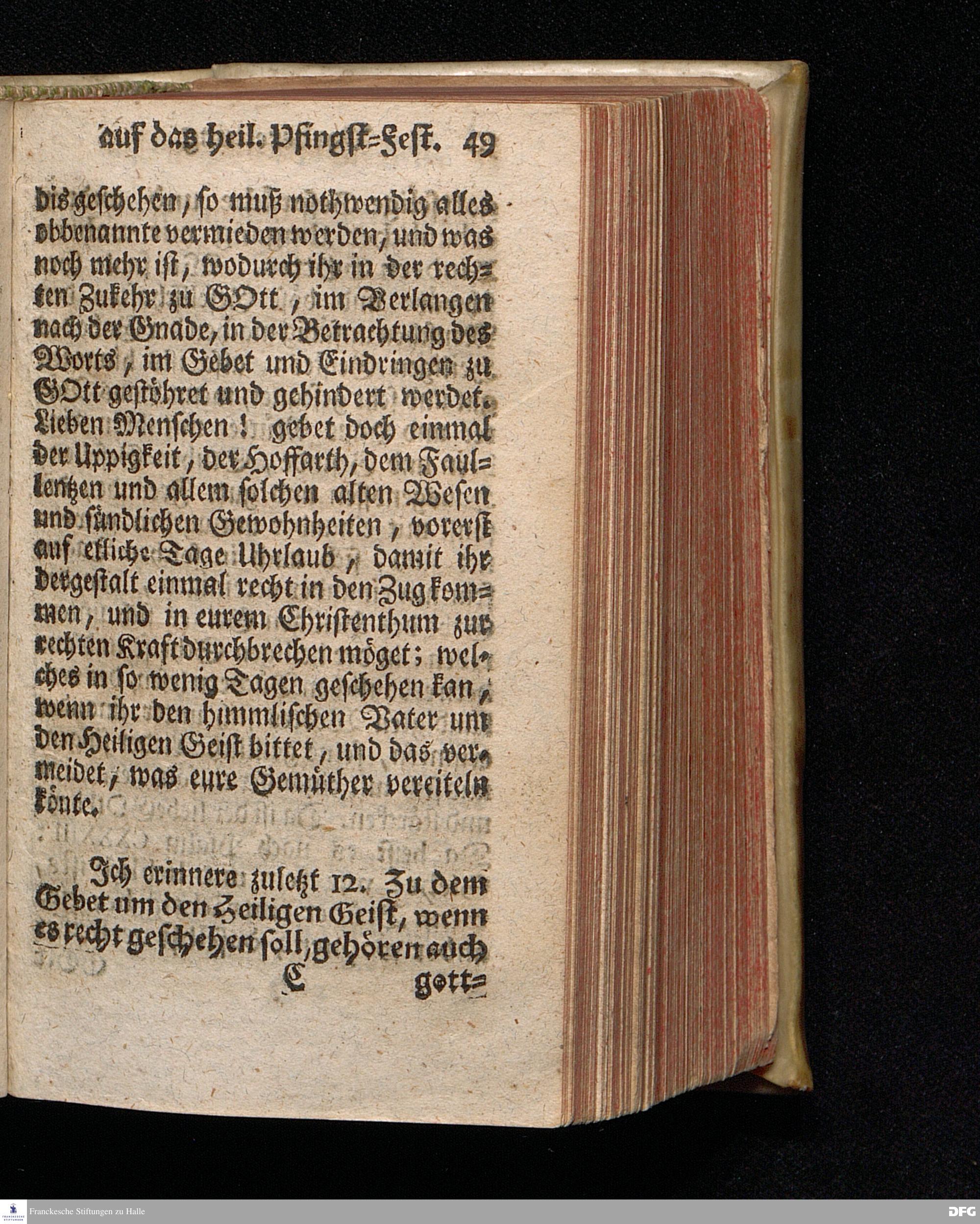Vorbereitung auf das Heilige Pfingst=Fest / Den 26ten Maji 1719. nach Anleitung der Worte Luc.XI, 13. [Bibelzitat.] in Volckreicher Versammlung Auf dem Wäysen=Hause zu Glaucha an Halle gegeben von August Hermann Francken / SS.Theol.Prof.Past.Vlr.& Scholarcha. Die II.Auflage. HALLE, In Verlegung des Wäysen=Hauses. 1730.