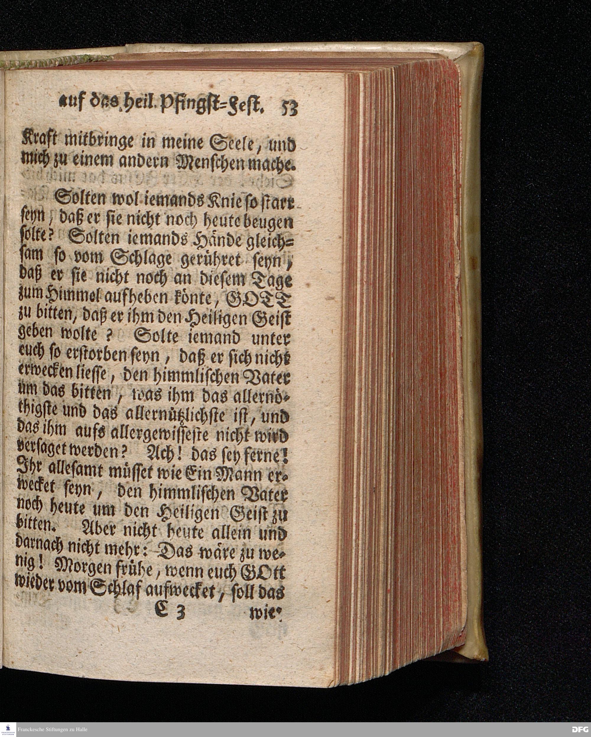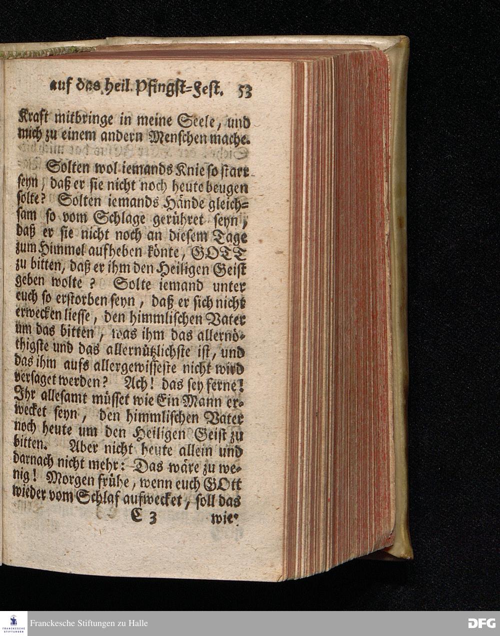Vorbereitung auf das Heilige Pfingst=Fest / Den 26ten Maji 1719. nach Anleitung der Worte Luc.XI, 13. [Bibelzitat.] in Volckreicher Versammlung Auf dem Wäysen=Hause zu Glaucha an Halle gegeben von August Hermann Francken / SS.Theol.Prof.Past.Vlr.& Scholarcha. Die II.Auflage. HALLE, In Verlegung des Wäysen=Hauses. 1730.