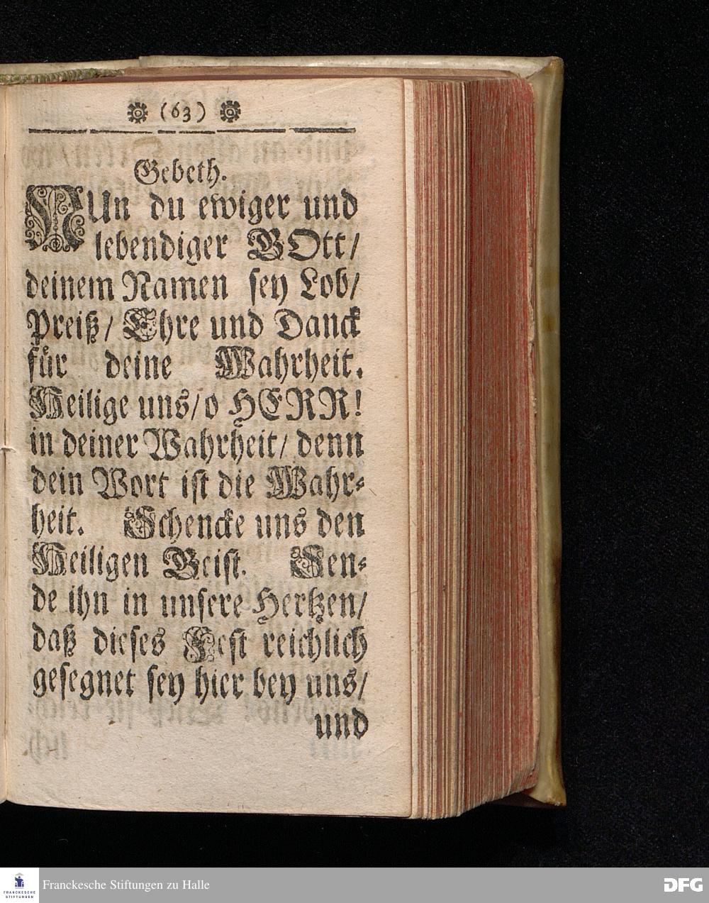 Vorbereitung auf das Heilige Pfingst=Fest / nach Anleitung Der Worte Pauli Rom. VIII, 8--14. in öffentlicher Versammlung auf dem Wäysen=Hause zu Glaucha an Halle / den 18.Maj.1709. ertheilet Von August Hermann Francken / S.Theol.Prof.und Past Vlric. Andere Auflage. HALLE, in Verlegung des Wäysen=Hauses. 1723.