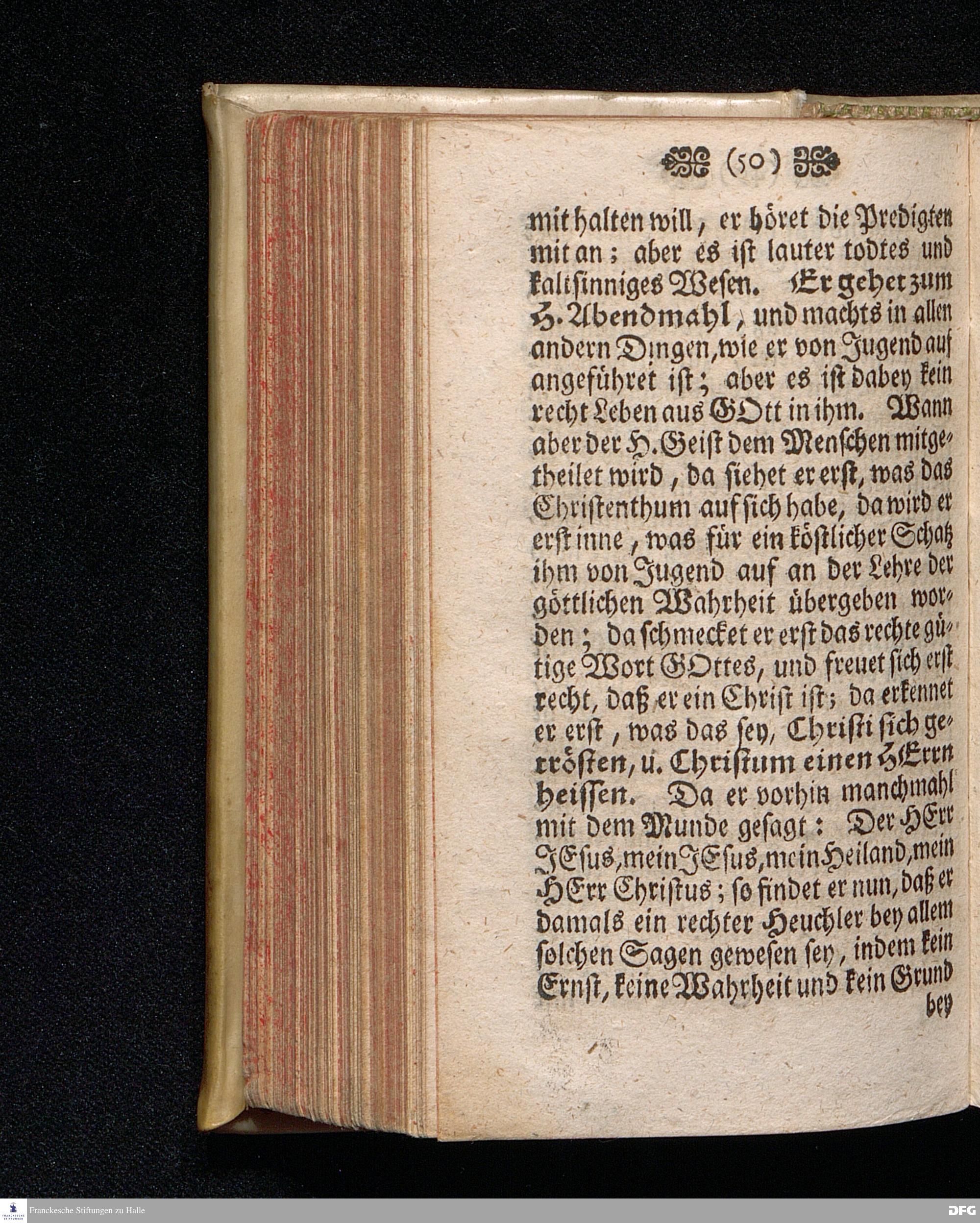 Vorbereitung auf das Heilige Pfingst=Fest / nach Anleitung Der Worte Pauli 1.Cor.XII,3. [Bibelzitat.] in öffentlicher Versammlung auf dem Wäysen=Hause zu Glaucha an Halle, den 7.Jun.1710. ertheilet Von August Hermann Francken / S.Theol.Prof.Ord.und Past.zu St.Ulrich, und des Gymnasii Scholarcha. Andere Auflage. HALLE, in Verlegung des Wäysen=Hauses. MDCCXXIII.