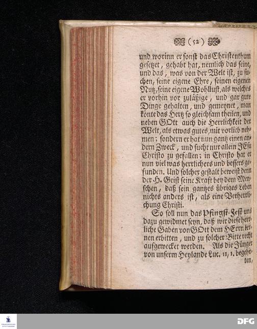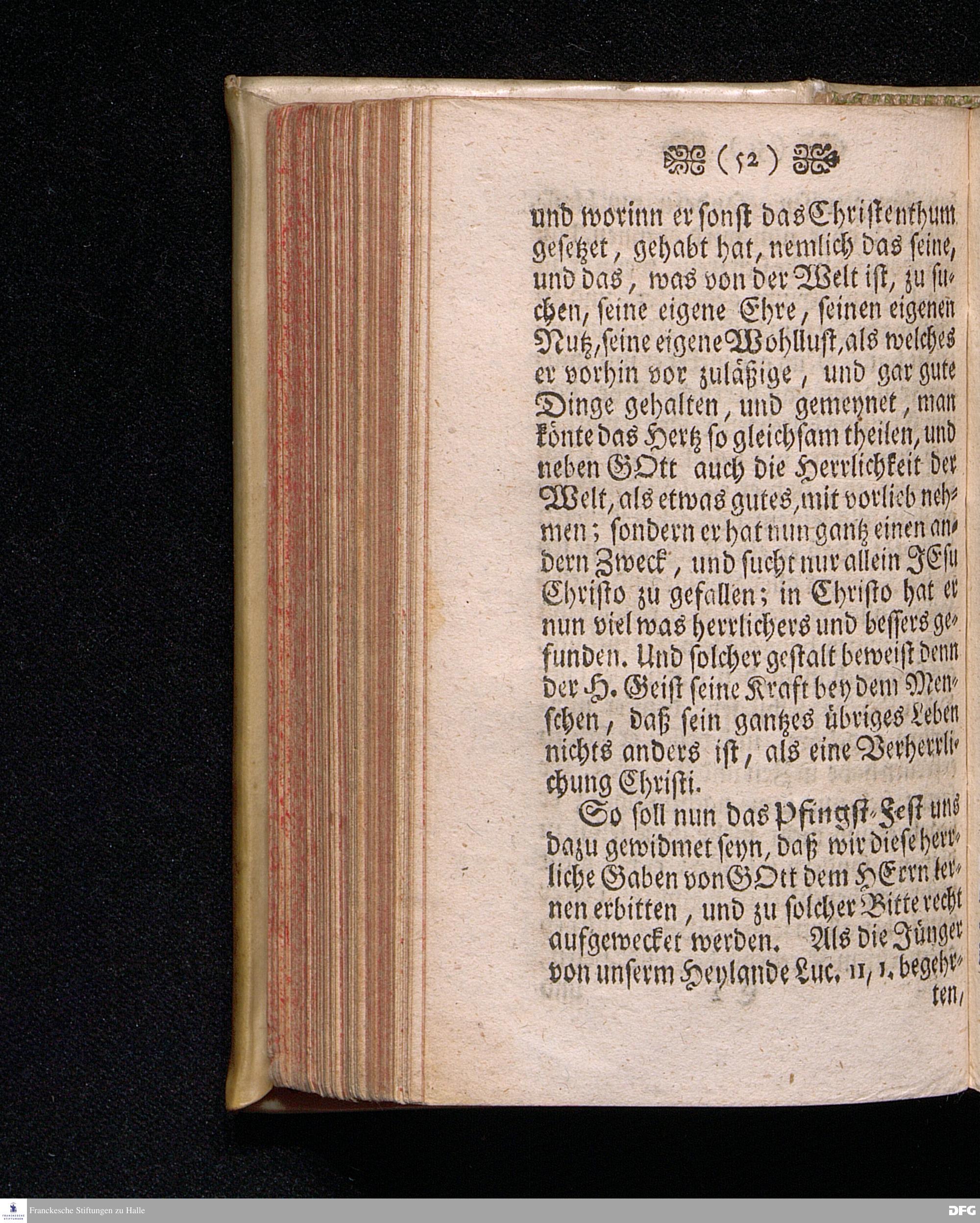 Vorbereitung auf das Heilige Pfingst=Fest / nach Anleitung Der Worte Pauli 1.Cor.XII,3. [Bibelzitat.] in öffentlicher Versammlung auf dem Wäysen=Hause zu Glaucha an Halle, den 7.Jun.1710. ertheilet Von August Hermann Francken / S.Theol.Prof.Ord.und Past.zu St.Ulrich, und des Gymnasii Scholarcha. Andere Auflage. HALLE, in Verlegung des Wäysen=Hauses. MDCCXXIII.