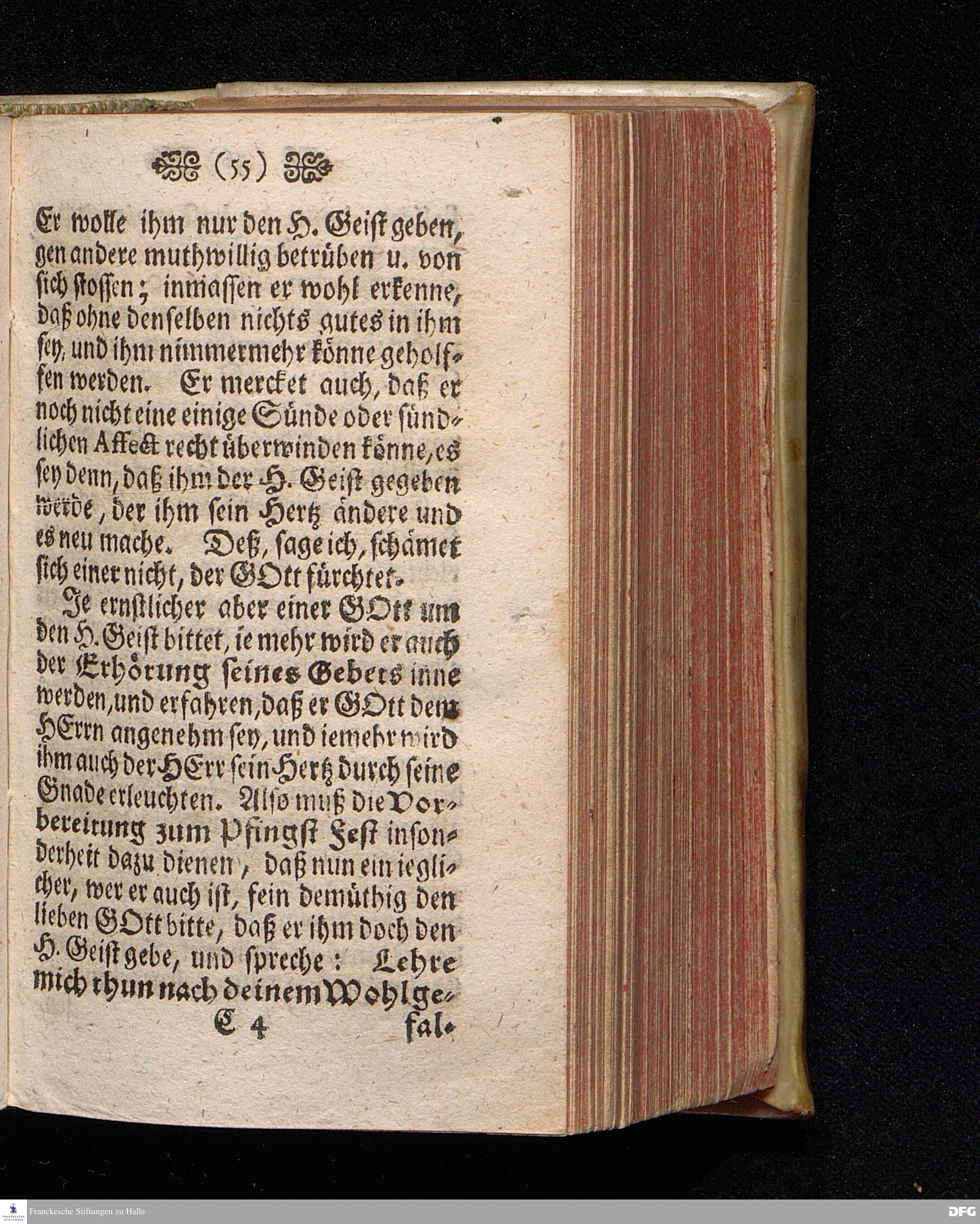 Vorbereitung auf das Heilige Pfingst=Fest / nach Anleitung Der Worte Pauli 1.Cor.XII,3. [Bibelzitat.] in öffentlicher Versammlung auf dem Wäysen=Hause zu Glaucha an Halle, den 7.Jun.1710. ertheilet Von August Hermann Francken / S.Theol.Prof.Ord.und Past.zu St.Ulrich, und des Gymnasii Scholarcha. Andere Auflage. HALLE, in Verlegung des Wäysen=Hauses. MDCCXXIII.