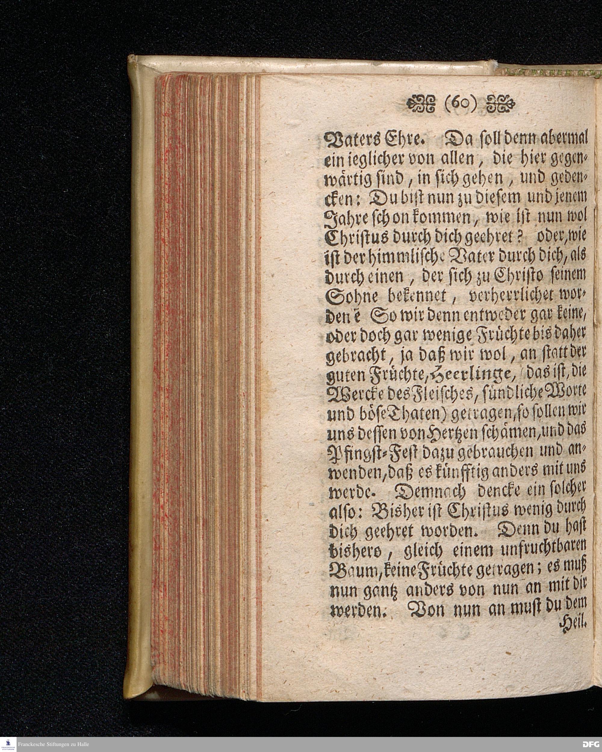 Vorbereitung auf das Heilige Pfingst=Fest / nach Anleitung Der Worte Pauli 1.Cor.XII,3. [Bibelzitat.] in öffentlicher Versammlung auf dem Wäysen=Hause zu Glaucha an Halle, den 7.Jun.1710. ertheilet Von August Hermann Francken / S.Theol.Prof.Ord.und Past.zu St.Ulrich, und des Gymnasii Scholarcha. Andere Auflage. HALLE, in Verlegung des Wäysen=Hauses. MDCCXXIII.