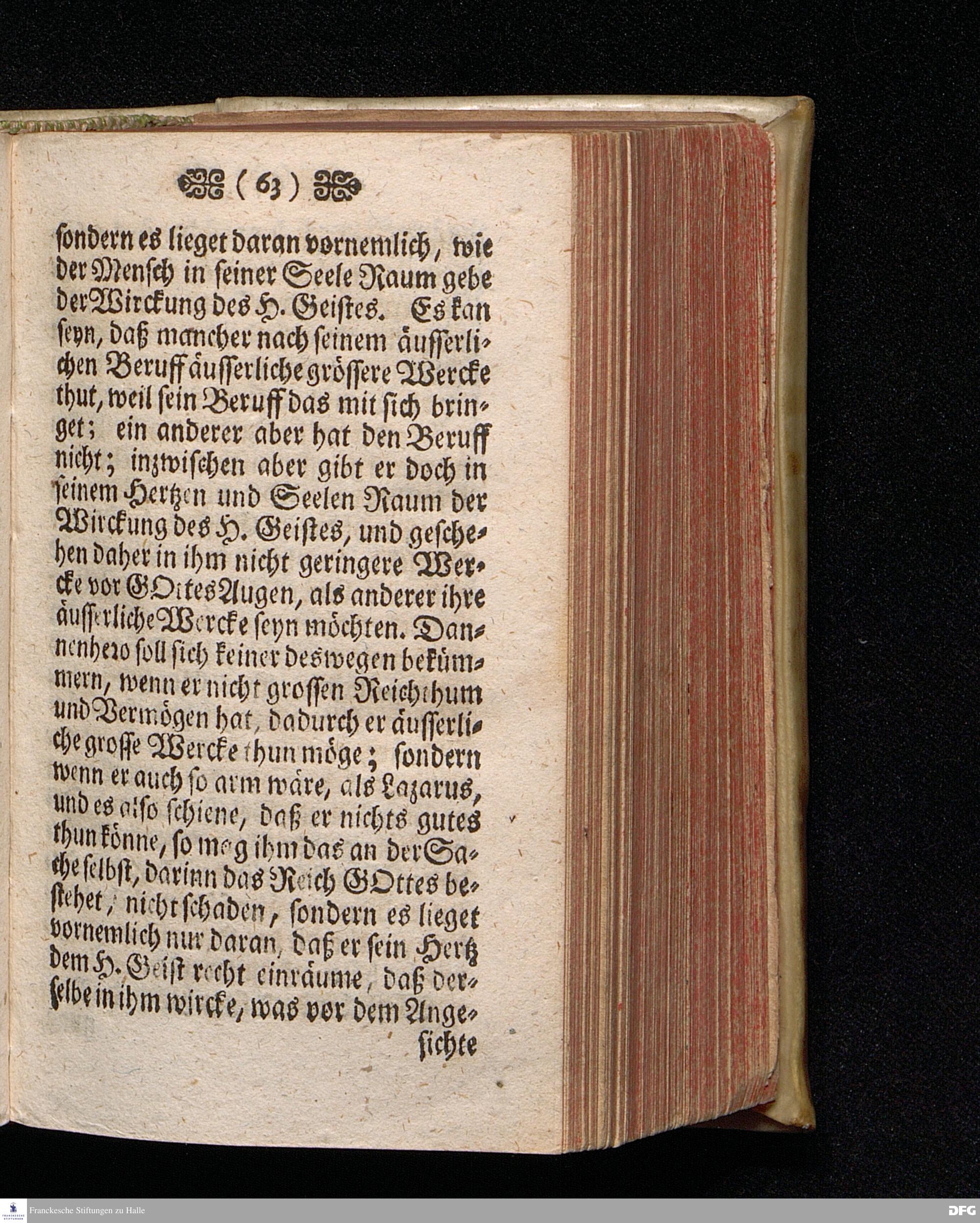 Vorbereitung auf das Heilige Pfingst=Fest / nach Anleitung Der Worte Pauli 1.Cor.XII,3. [Bibelzitat.] in öffentlicher Versammlung auf dem Wäysen=Hause zu Glaucha an Halle, den 7.Jun.1710. ertheilet Von August Hermann Francken / S.Theol.Prof.Ord.und Past.zu St.Ulrich, und des Gymnasii Scholarcha. Andere Auflage. HALLE, in Verlegung des Wäysen=Hauses. MDCCXXIII.