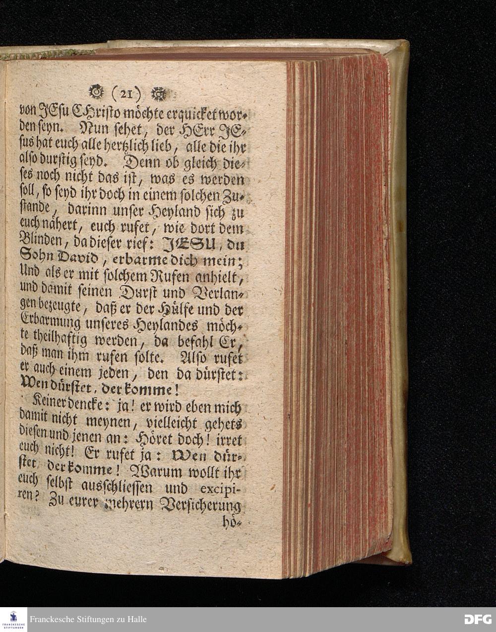 Vorbereitung auf das heilige Pfingst=Fest, den 3. Junii 1713. Nach Anleitung der Worte Off.XXII, 17. [Bibelzitat.] In Volckreicher Versammlung auf dem Wäysen=Hause zu Glaucha an Halle gegeben von August Hermann Francken, S.Theol.Pr.Ord.Past.Ulr.& Scholarcha. Dritte Auflage. HALLE, in Verlegung des Wäysen=Hauses, 1729.