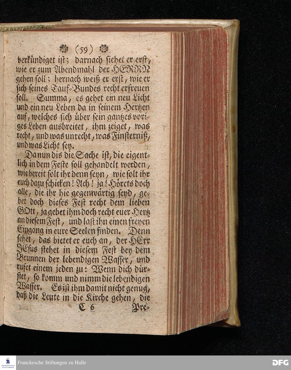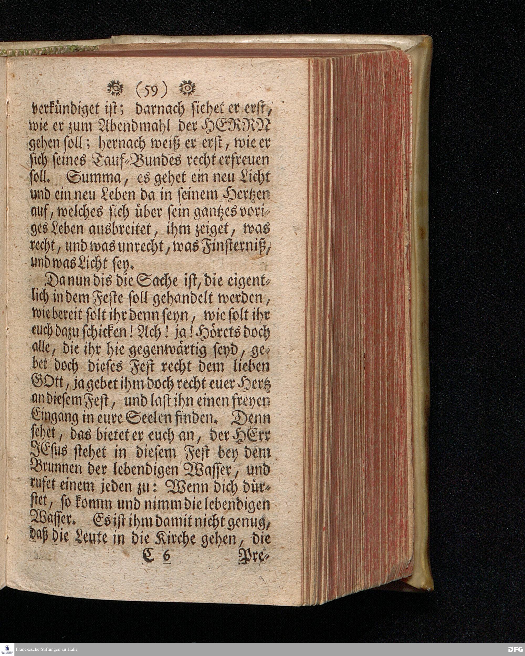Vorbereitung auf das heilige Pfingst=Fest, den 3. Junii 1713. Nach Anleitung der Worte Off.XXII, 17. [Bibelzitat.] In Volckreicher Versammlung auf dem Wäysen=Hause zu Glaucha an Halle gegeben von August Hermann Francken, S.Theol.Pr.Ord.Past.Ulr.& Scholarcha. Dritte Auflage. HALLE, in Verlegung des Wäysen=Hauses, 1729.