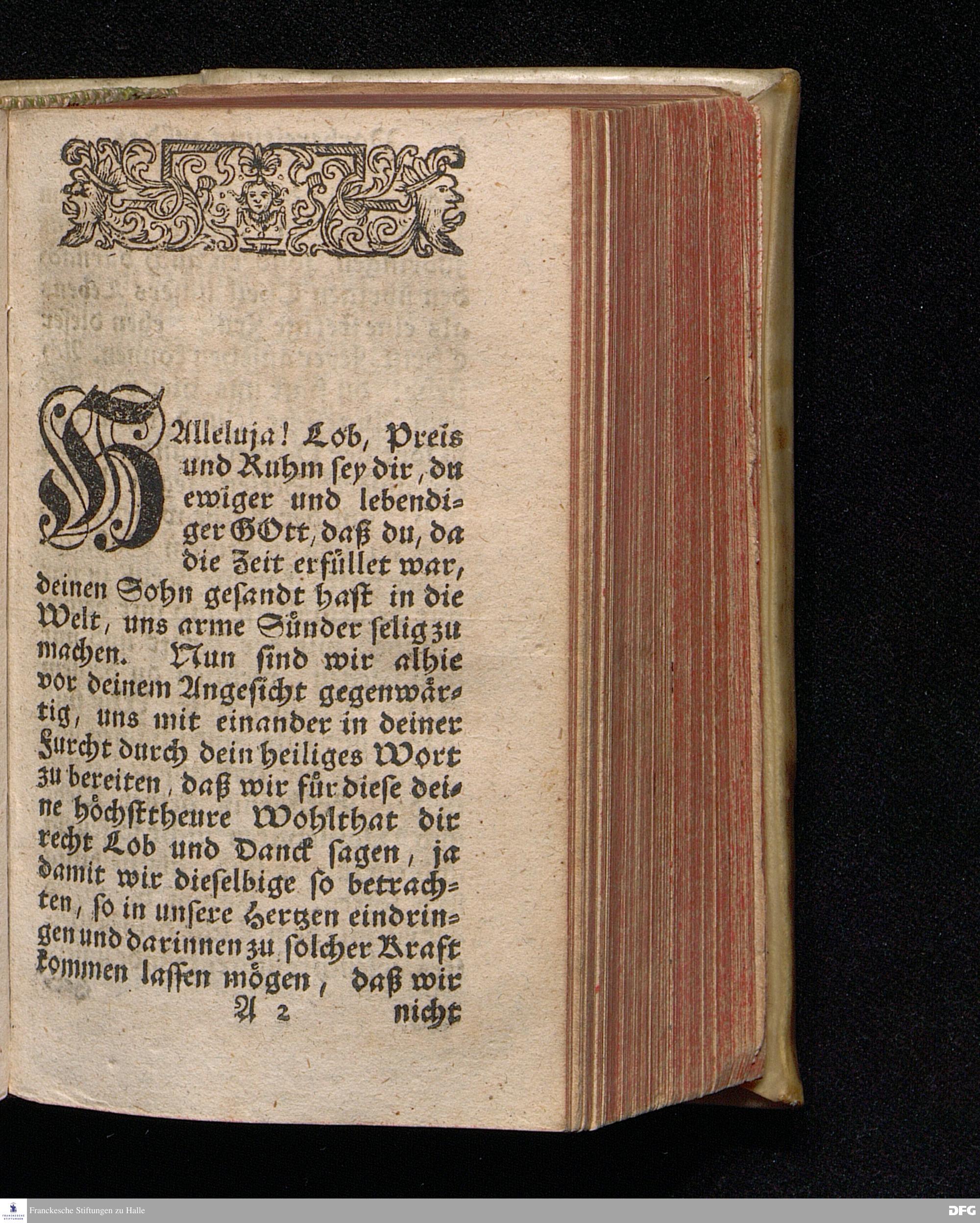 Vorbereitung auf das Weyhnacht=Fest / aus den Worten Jes.IX, 6.7. [Bibeltext;] den 23.Decembr.1720. in volckreicher Versammlung auf dem Wäysen=Hause zu Glaucha an Halle ertheilet von August Hermann Francken / S.Th.Prof.Past.Vlr.& Schol. Andere Auflage. HALLE, zu finden im Wäysen=Hause 1730.