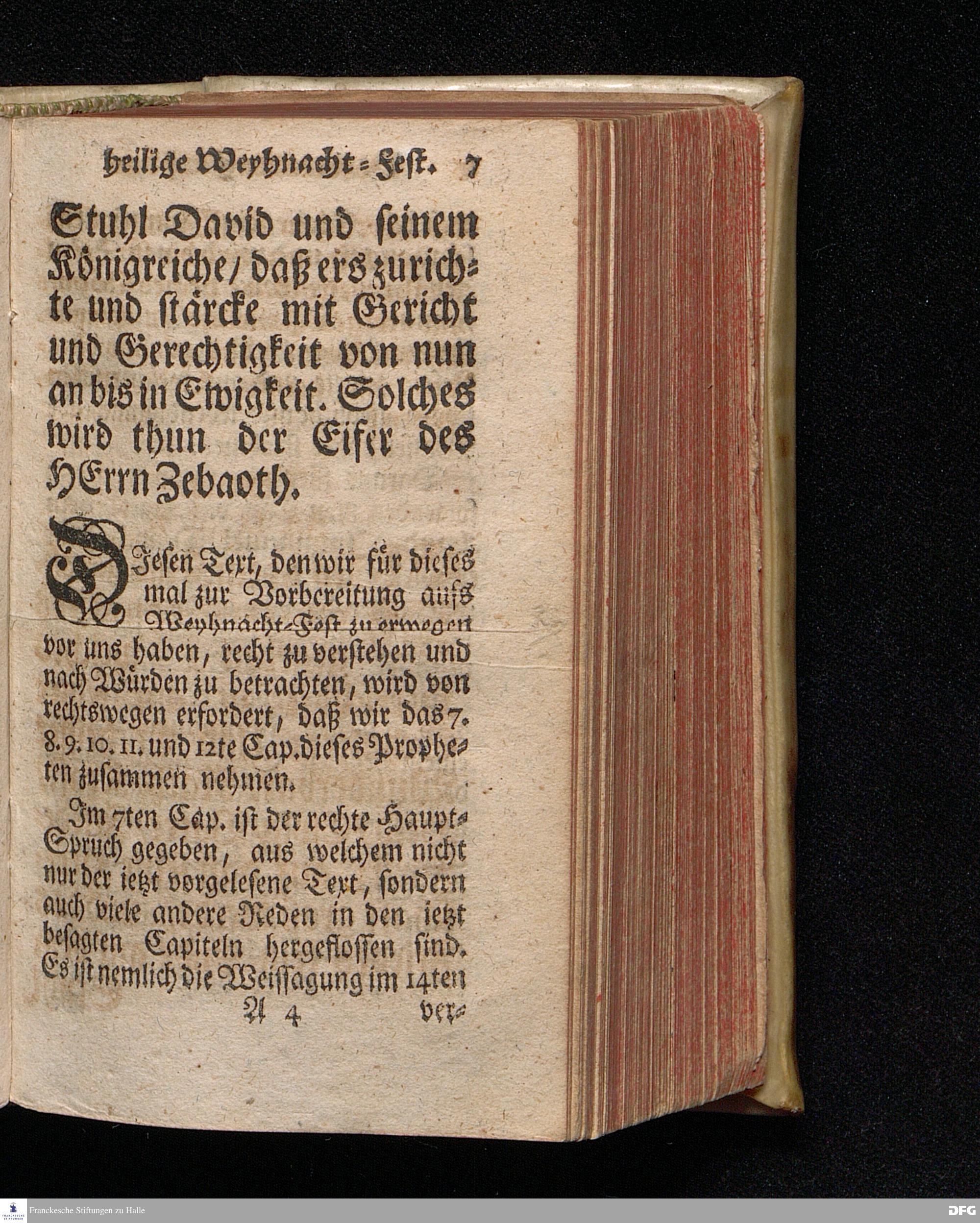 Vorbereitung auf das Weyhnacht=Fest / aus den Worten Jes.IX, 6.7. [Bibeltext;] den 23.Decembr.1720. in volckreicher Versammlung auf dem Wäysen=Hause zu Glaucha an Halle ertheilet von August Hermann Francken / S.Th.Prof.Past.Vlr.& Schol. Andere Auflage. HALLE, zu finden im Wäysen=Hause 1730.