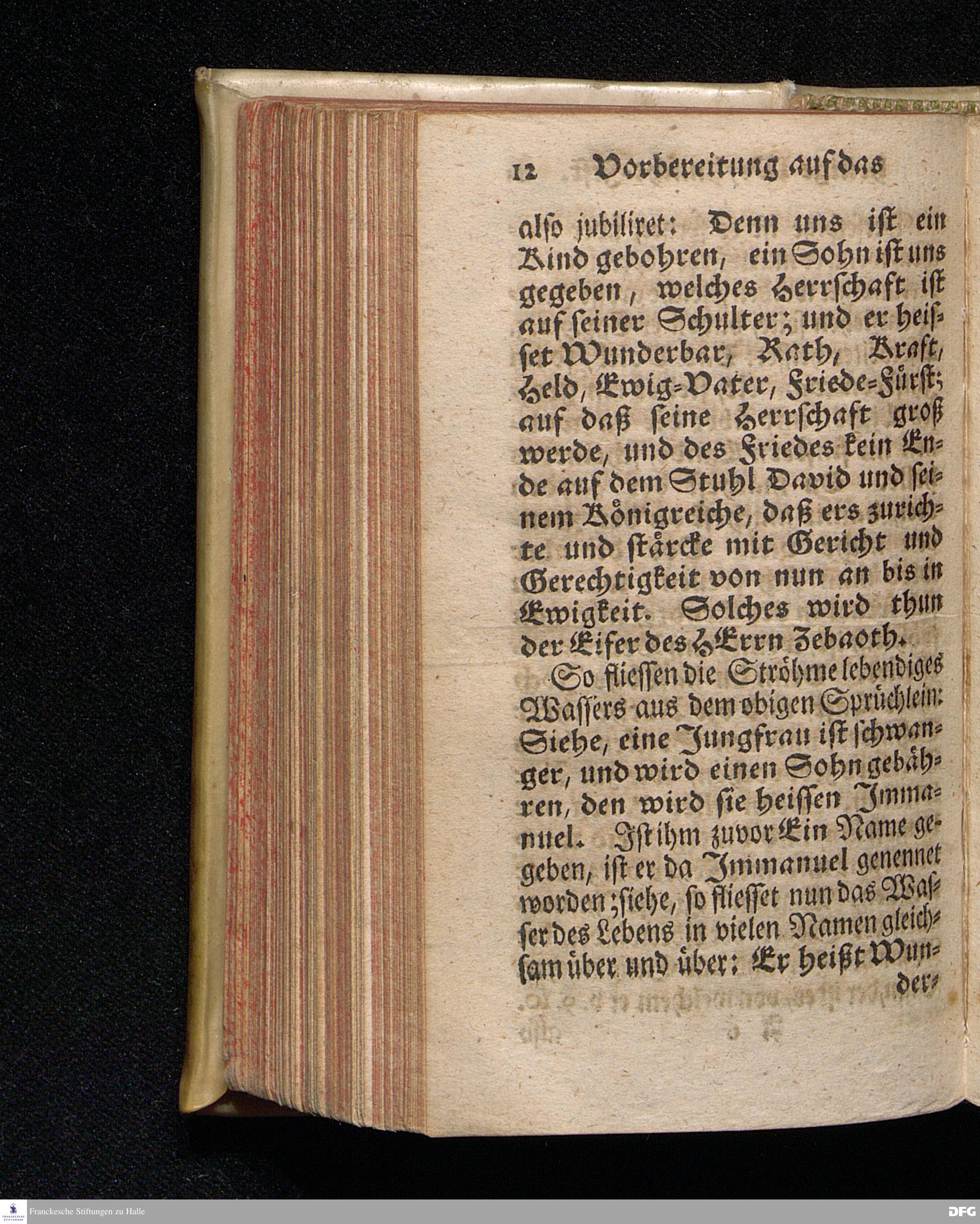 Vorbereitung auf das Weyhnacht=Fest / aus den Worten Jes.IX, 6.7. [Bibeltext;] den 23.Decembr.1720. in volckreicher Versammlung auf dem Wäysen=Hause zu Glaucha an Halle ertheilet von August Hermann Francken / S.Th.Prof.Past.Vlr.& Schol. Andere Auflage. HALLE, zu finden im Wäysen=Hause 1730.