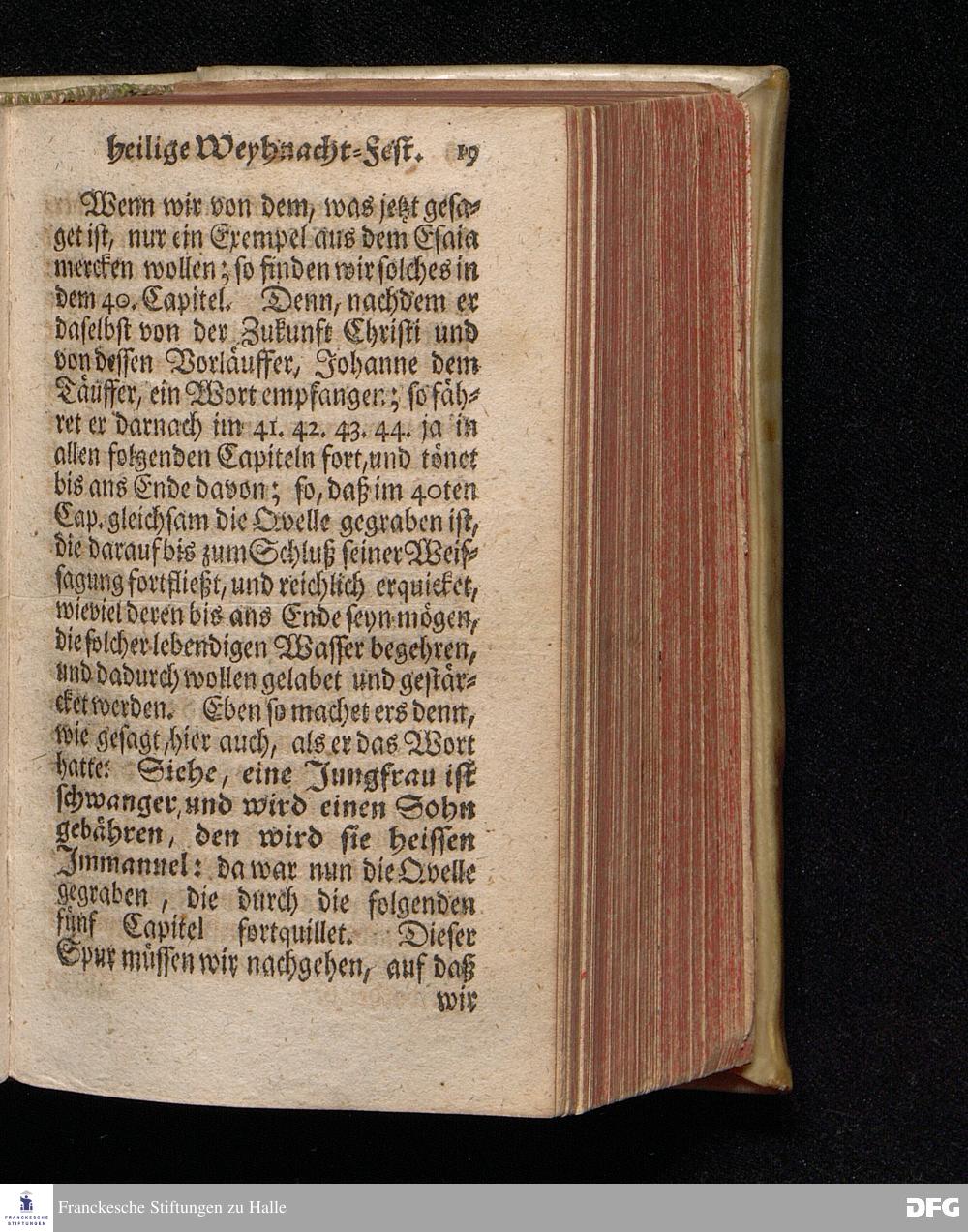 Vorbereitung auf das Weyhnacht=Fest / aus den Worten Jes.IX, 6.7. [Bibeltext;] den 23.Decembr.1720. in volckreicher Versammlung auf dem Wäysen=Hause zu Glaucha an Halle ertheilet von August Hermann Francken / S.Th.Prof.Past.Vlr.& Schol. Andere Auflage. HALLE, zu finden im Wäysen=Hause 1730.