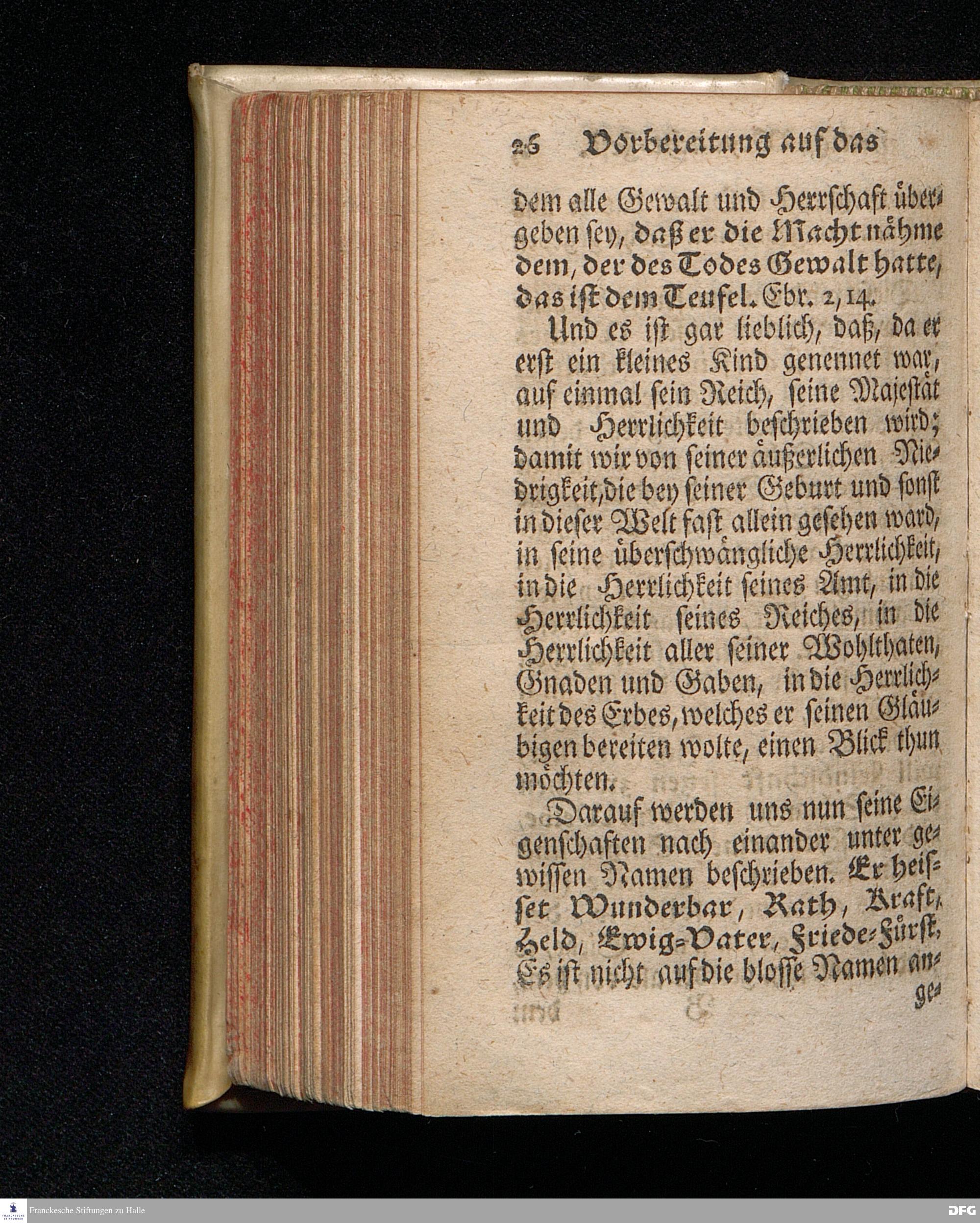 Vorbereitung auf das Weyhnacht=Fest / aus den Worten Jes.IX, 6.7. [Bibeltext;] den 23.Decembr.1720. in volckreicher Versammlung auf dem Wäysen=Hause zu Glaucha an Halle ertheilet von August Hermann Francken / S.Th.Prof.Past.Vlr.& Schol. Andere Auflage. HALLE, zu finden im Wäysen=Hause 1730.