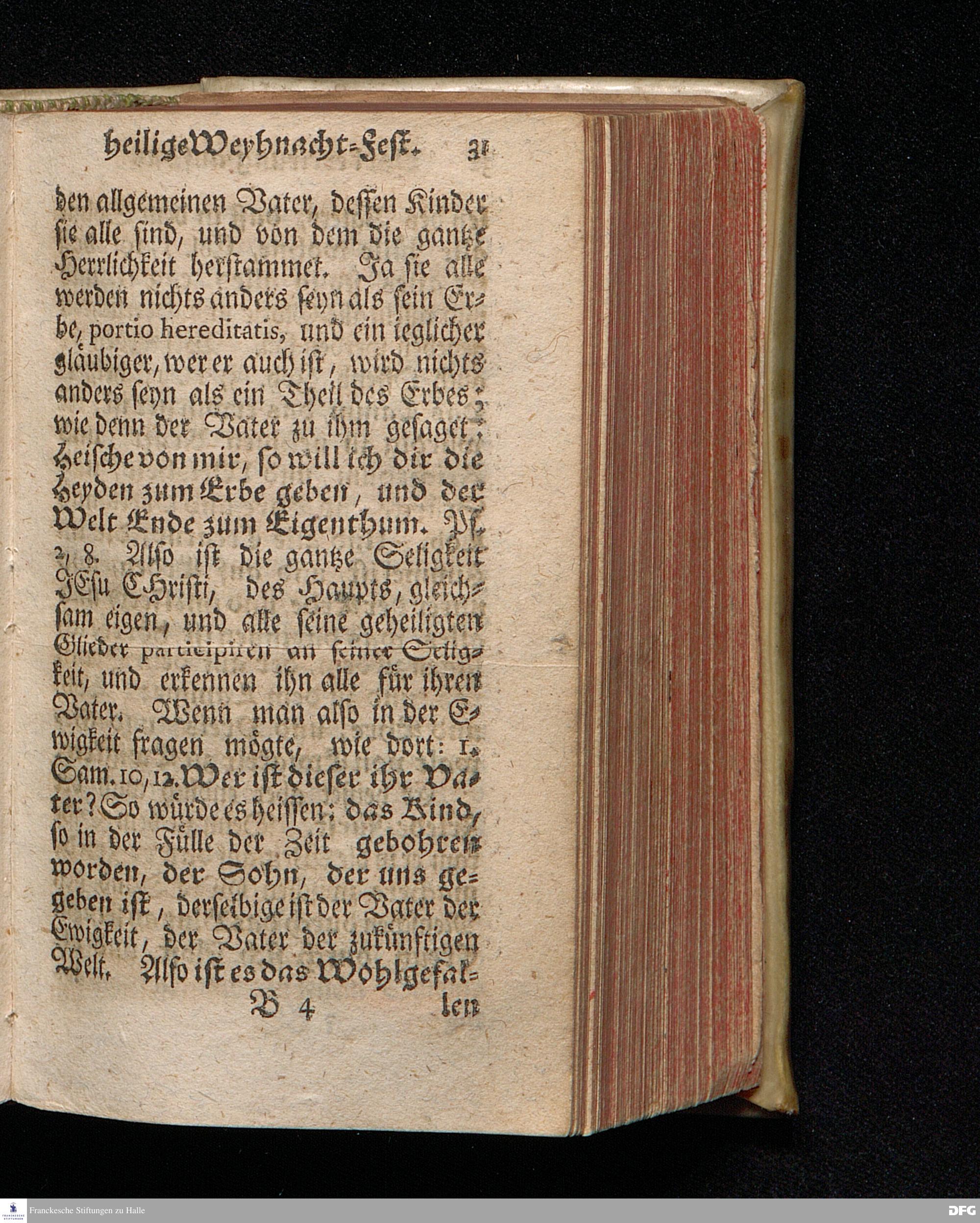 Vorbereitung auf das Weyhnacht=Fest / aus den Worten Jes.IX, 6.7. [Bibeltext;] den 23.Decembr.1720. in volckreicher Versammlung auf dem Wäysen=Hause zu Glaucha an Halle ertheilet von August Hermann Francken / S.Th.Prof.Past.Vlr.& Schol. Andere Auflage. HALLE, zu finden im Wäysen=Hause 1730.