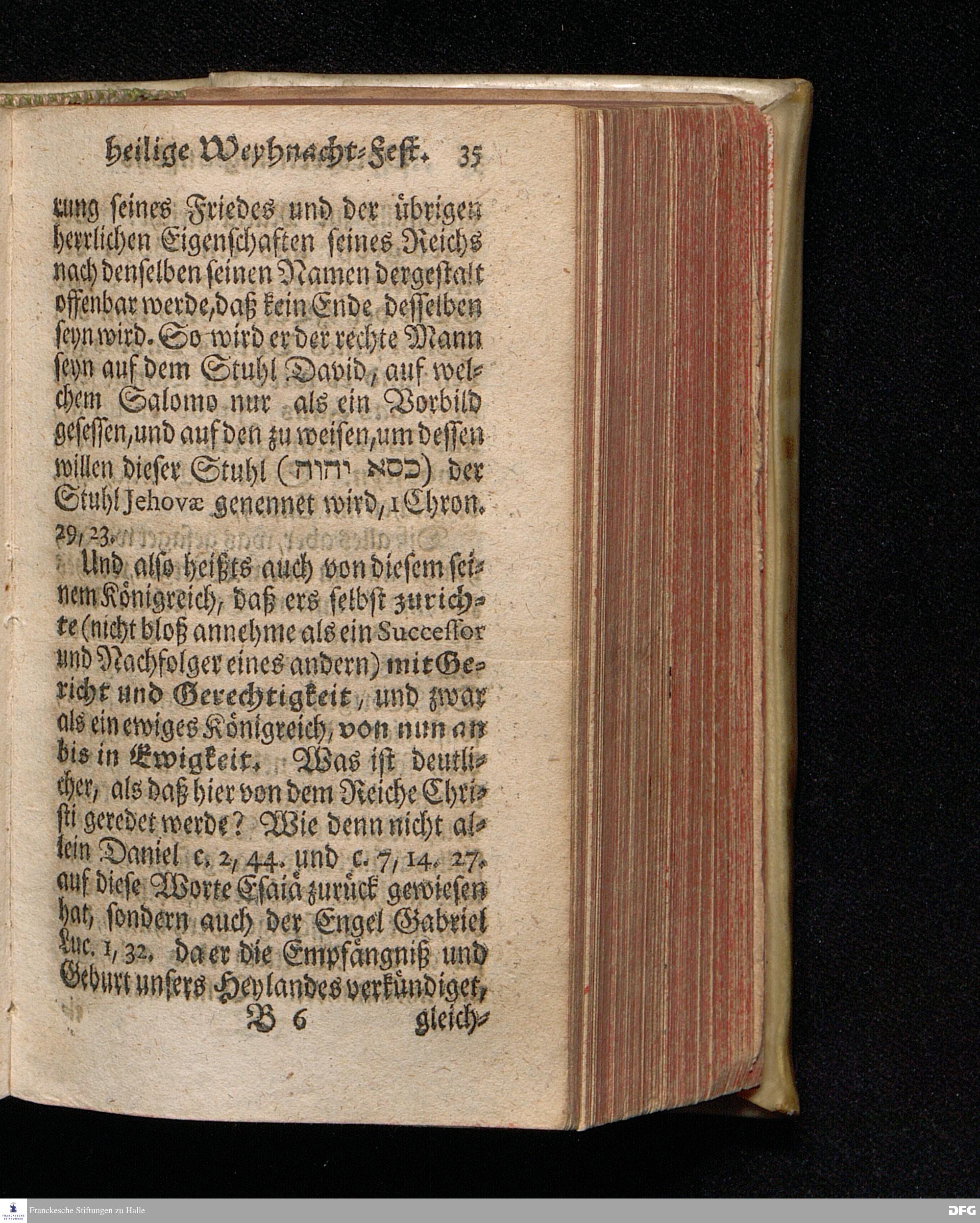 Vorbereitung auf das Weyhnacht=Fest / aus den Worten Jes.IX, 6.7. [Bibeltext;] den 23.Decembr.1720. in volckreicher Versammlung auf dem Wäysen=Hause zu Glaucha an Halle ertheilet von August Hermann Francken / S.Th.Prof.Past.Vlr.& Schol. Andere Auflage. HALLE, zu finden im Wäysen=Hause 1730.