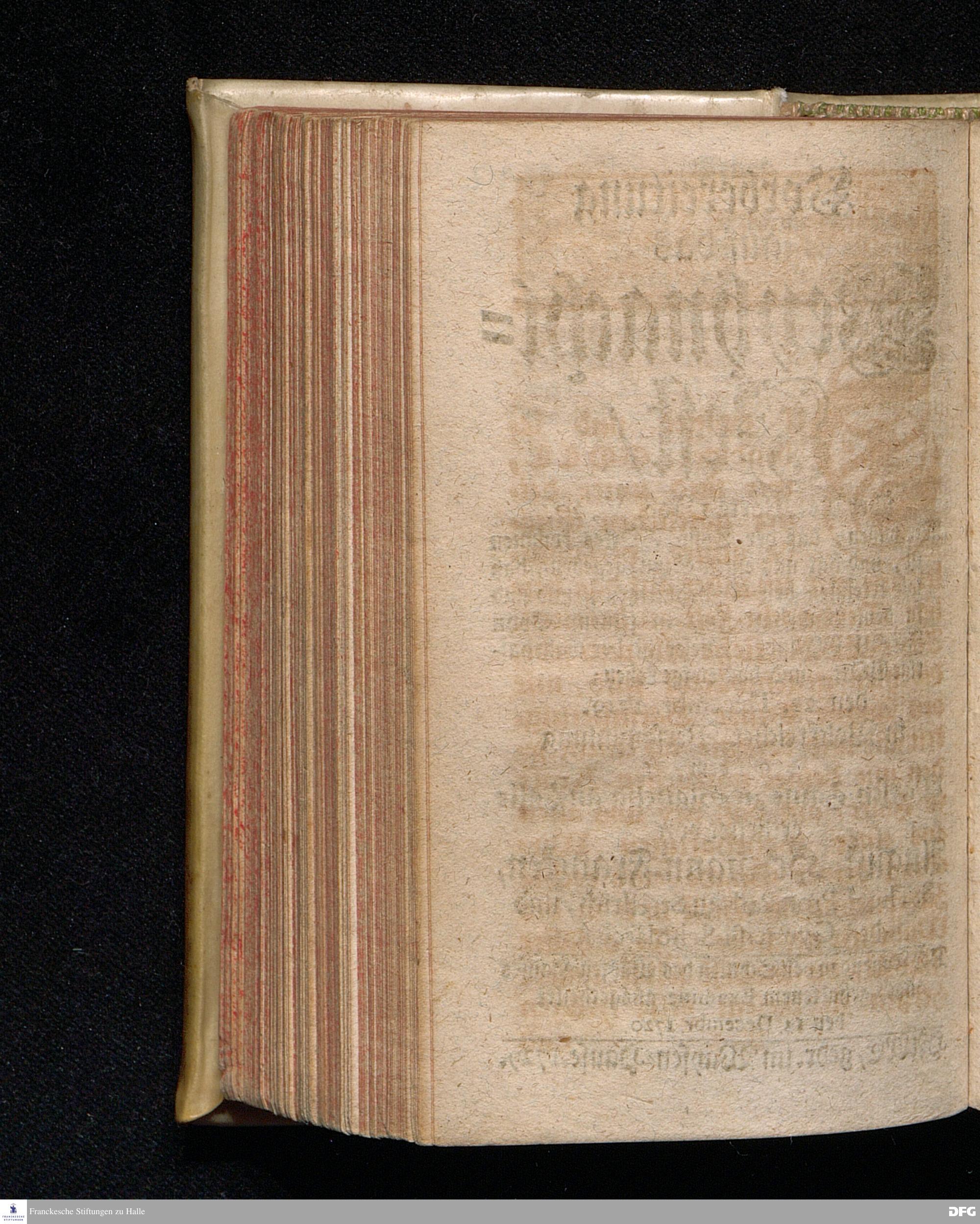 Vorbereitung auf das Weyhnacht=Fest / über die Worte 1 Joh.V, 20. [Bibelzitat;] den 22.Decembr. 1719. in Volckreicher Versammlung auf dem Wäysen=Hause zu Glaucha an Halle ertheilet von August Hermann Francken, S.Theol.Prof.Past. zu St.Ulrich, und des Gymnasii Scholarcha. Der Jugend in den Schulen des Wäysen=Hauses nach gehaltenem Examine ausgetheilet den 14.Decembr.1720. HALLE, gedr.im Wäysen=Hause. 1729.