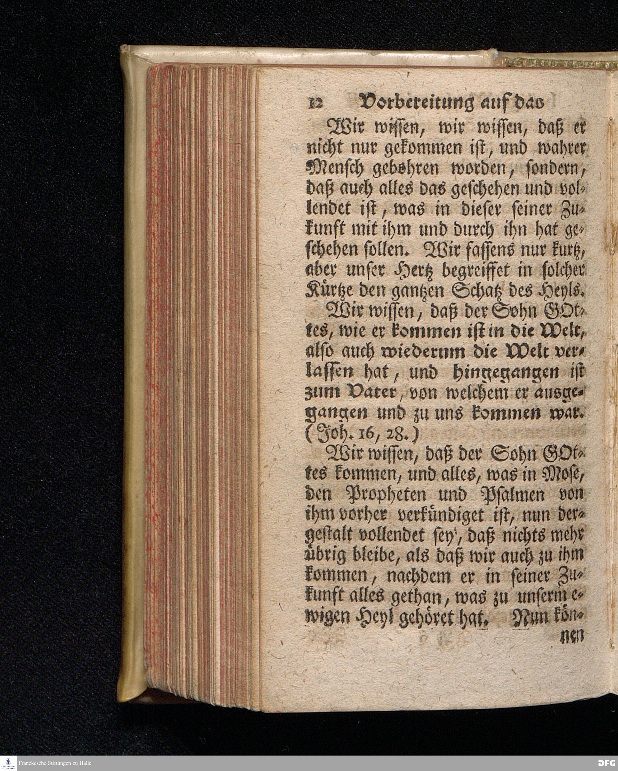 Vorbereitung auf das Weyhnacht=Fest / über die Worte 1 Joh.V, 20. [Bibelzitat;] den 22.Decembr. 1719. in Volckreicher Versammlung auf dem Wäysen=Hause zu Glaucha an Halle ertheilet von August Hermann Francken, S.Theol.Prof.Past. zu St.Ulrich, und des Gymnasii Scholarcha. Der Jugend in den Schulen des Wäysen=Hauses nach gehaltenem Examine ausgetheilet den 14.Decembr.1720. HALLE, gedr.im Wäysen=Hause. 1729.
