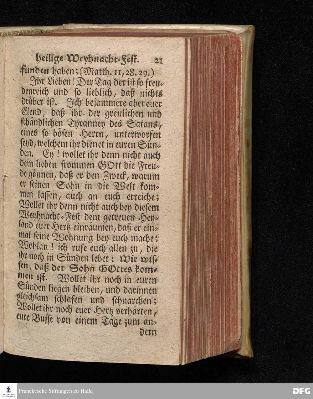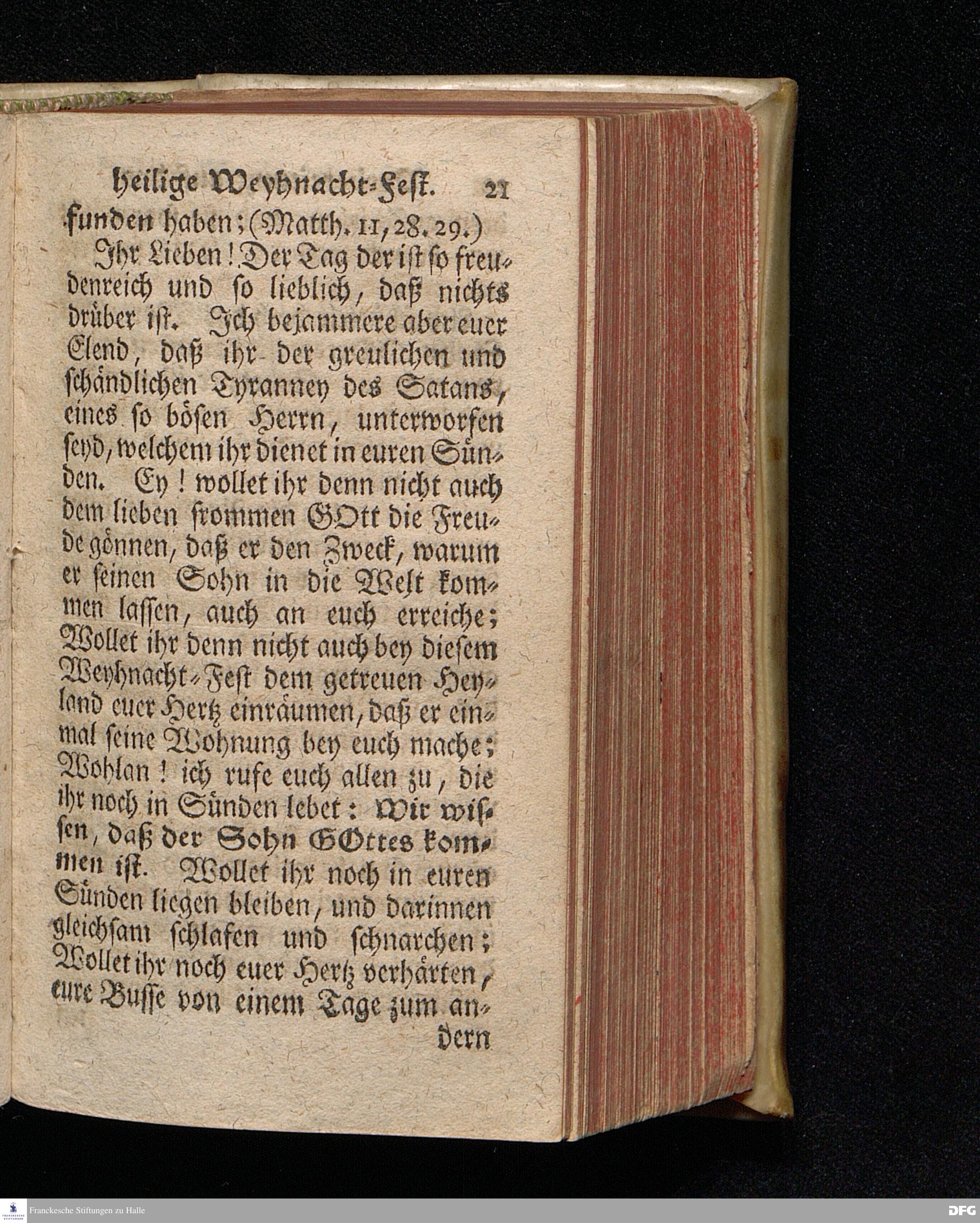 Vorbereitung auf das Weyhnacht=Fest / über die Worte 1 Joh.V, 20. [Bibelzitat;] den 22.Decembr. 1719. in Volckreicher Versammlung auf dem Wäysen=Hause zu Glaucha an Halle ertheilet von August Hermann Francken, S.Theol.Prof.Past. zu St.Ulrich, und des Gymnasii Scholarcha. Der Jugend in den Schulen des Wäysen=Hauses nach gehaltenem Examine ausgetheilet den 14.Decembr.1720. HALLE, gedr.im Wäysen=Hause. 1729.