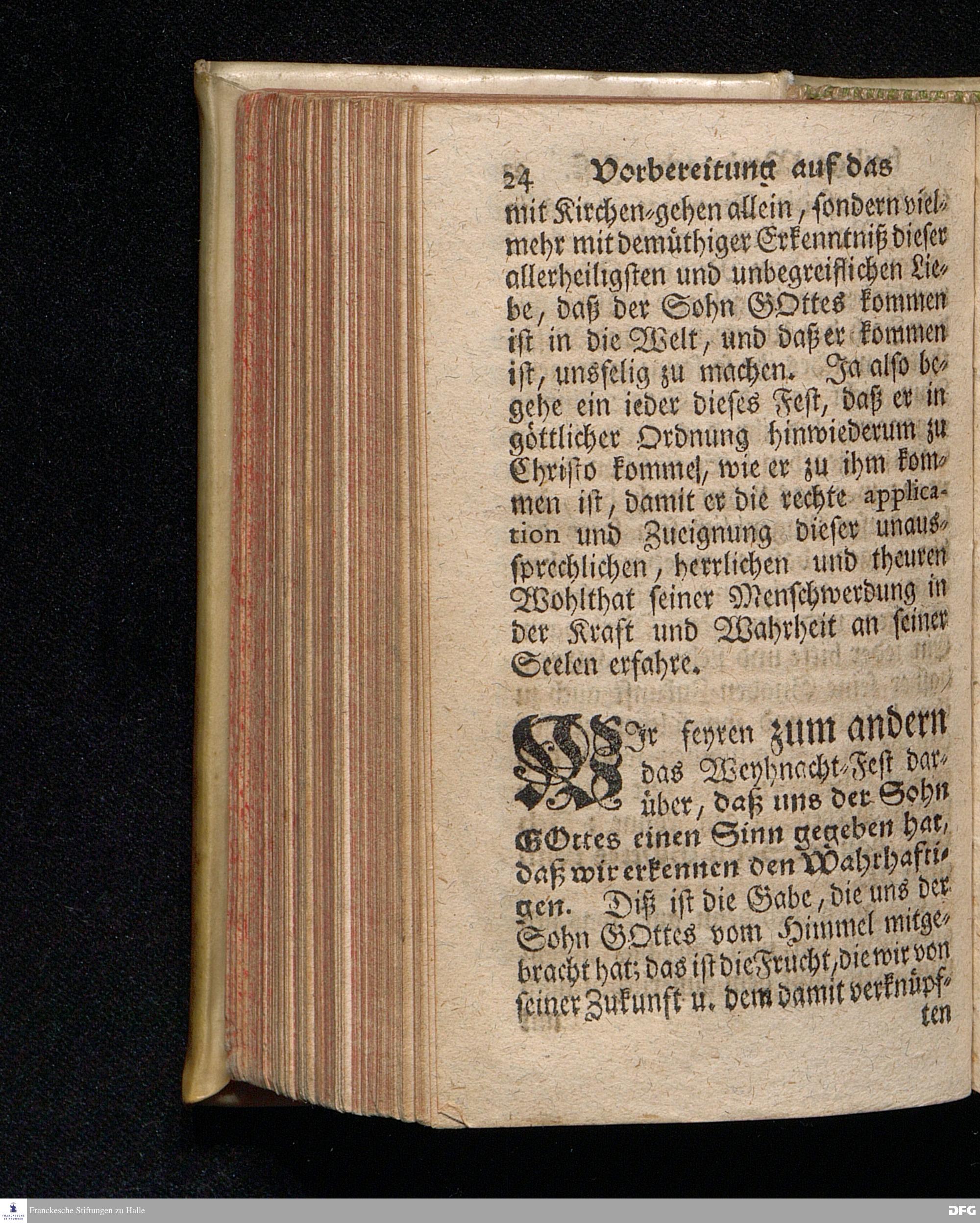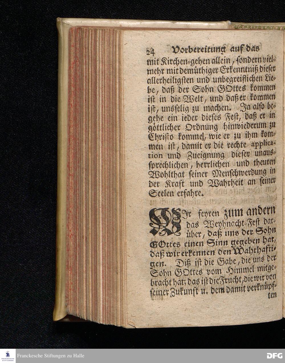 Vorbereitung auf das Weyhnacht=Fest / über die Worte 1 Joh.V, 20. [Bibelzitat;] den 22.Decembr. 1719. in Volckreicher Versammlung auf dem Wäysen=Hause zu Glaucha an Halle ertheilet von August Hermann Francken, S.Theol.Prof.Past. zu St.Ulrich, und des Gymnasii Scholarcha. Der Jugend in den Schulen des Wäysen=Hauses nach gehaltenem Examine ausgetheilet den 14.Decembr.1720. HALLE, gedr.im Wäysen=Hause. 1729.