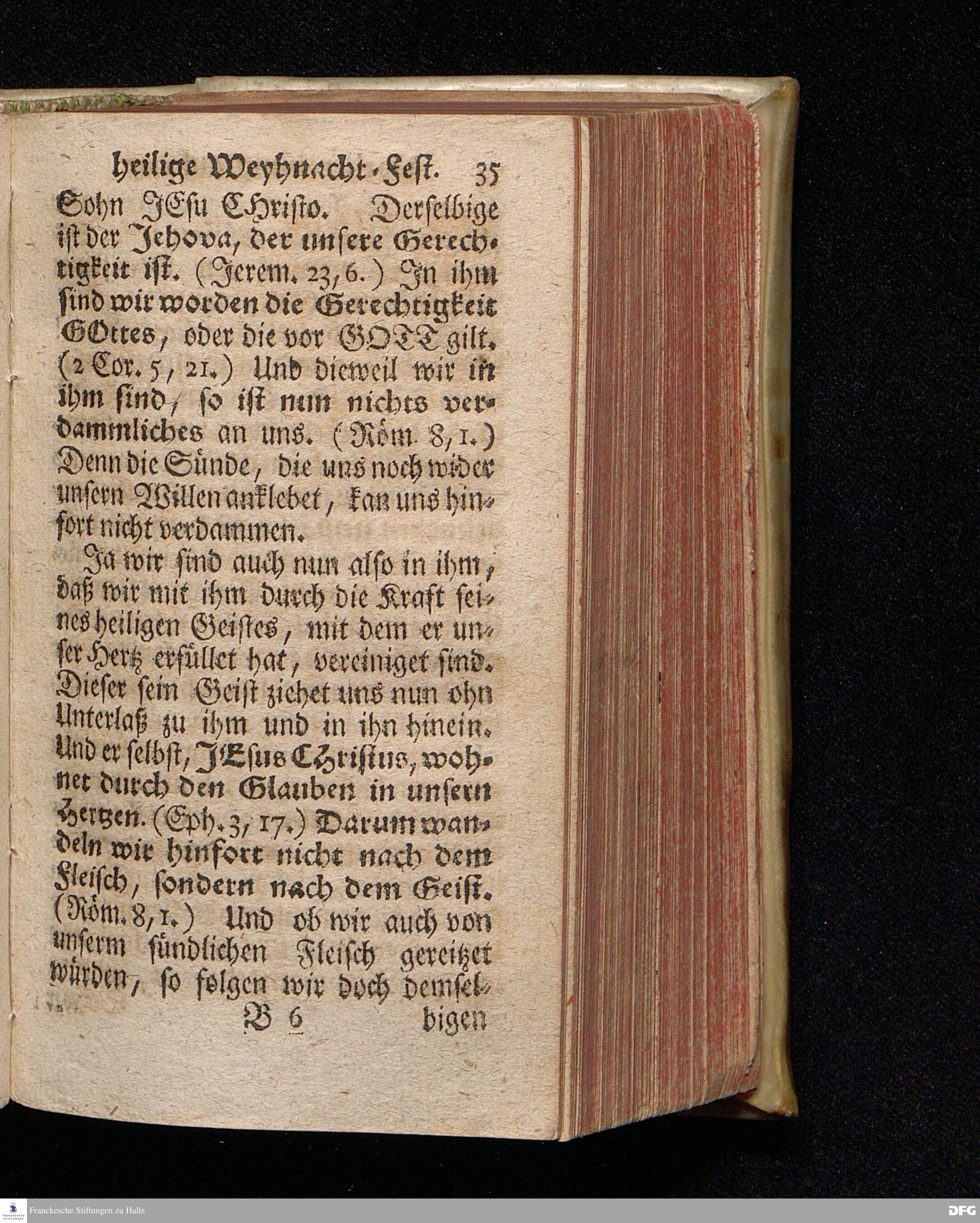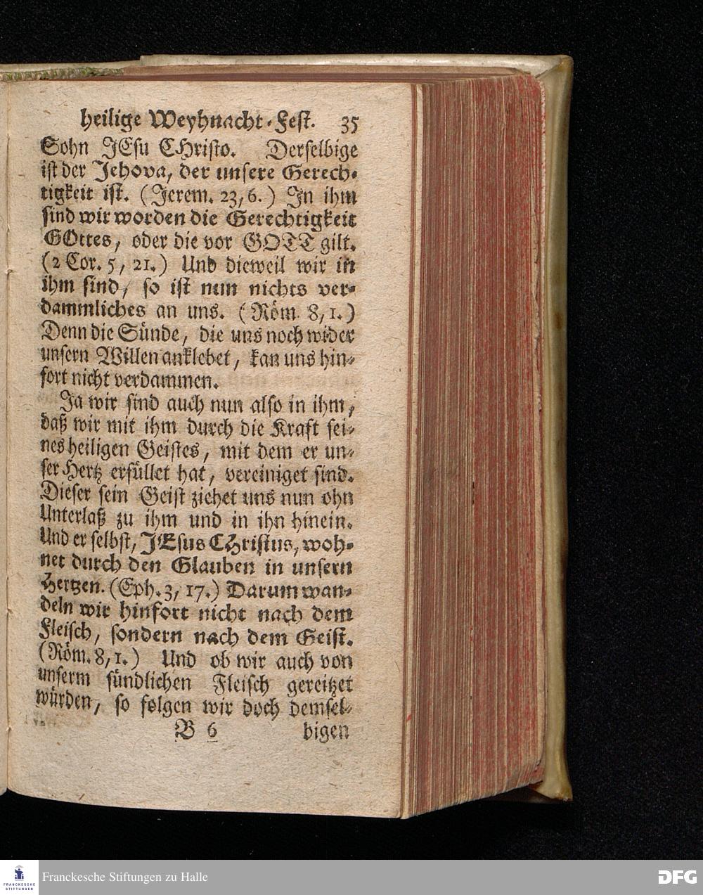 Vorbereitung auf das Weyhnacht=Fest / über die Worte 1 Joh.V, 20. [Bibelzitat;] den 22.Decembr. 1719. in Volckreicher Versammlung auf dem Wäysen=Hause zu Glaucha an Halle ertheilet von August Hermann Francken, S.Theol.Prof.Past. zu St.Ulrich, und des Gymnasii Scholarcha. Der Jugend in den Schulen des Wäysen=Hauses nach gehaltenem Examine ausgetheilet den 14.Decembr.1720. HALLE, gedr.im Wäysen=Hause. 1729.