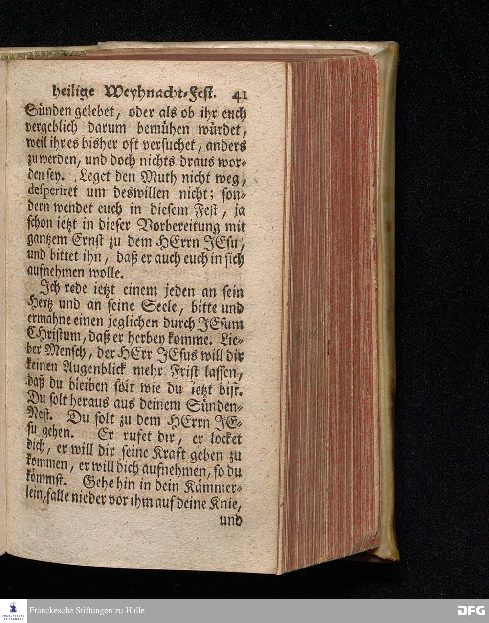 Vorbereitung auf das Weyhnacht=Fest / über die Worte 1 Joh.V, 20. [Bibelzitat;] den 22.Decembr. 1719. in Volckreicher Versammlung auf dem Wäysen=Hause zu Glaucha an Halle ertheilet von August Hermann Francken, S.Theol.Prof.Past. zu St.Ulrich, und des Gymnasii Scholarcha. Der Jugend in den Schulen des Wäysen=Hauses nach gehaltenem Examine ausgetheilet den 14.Decembr.1720. HALLE, gedr.im Wäysen=Hause. 1729.
