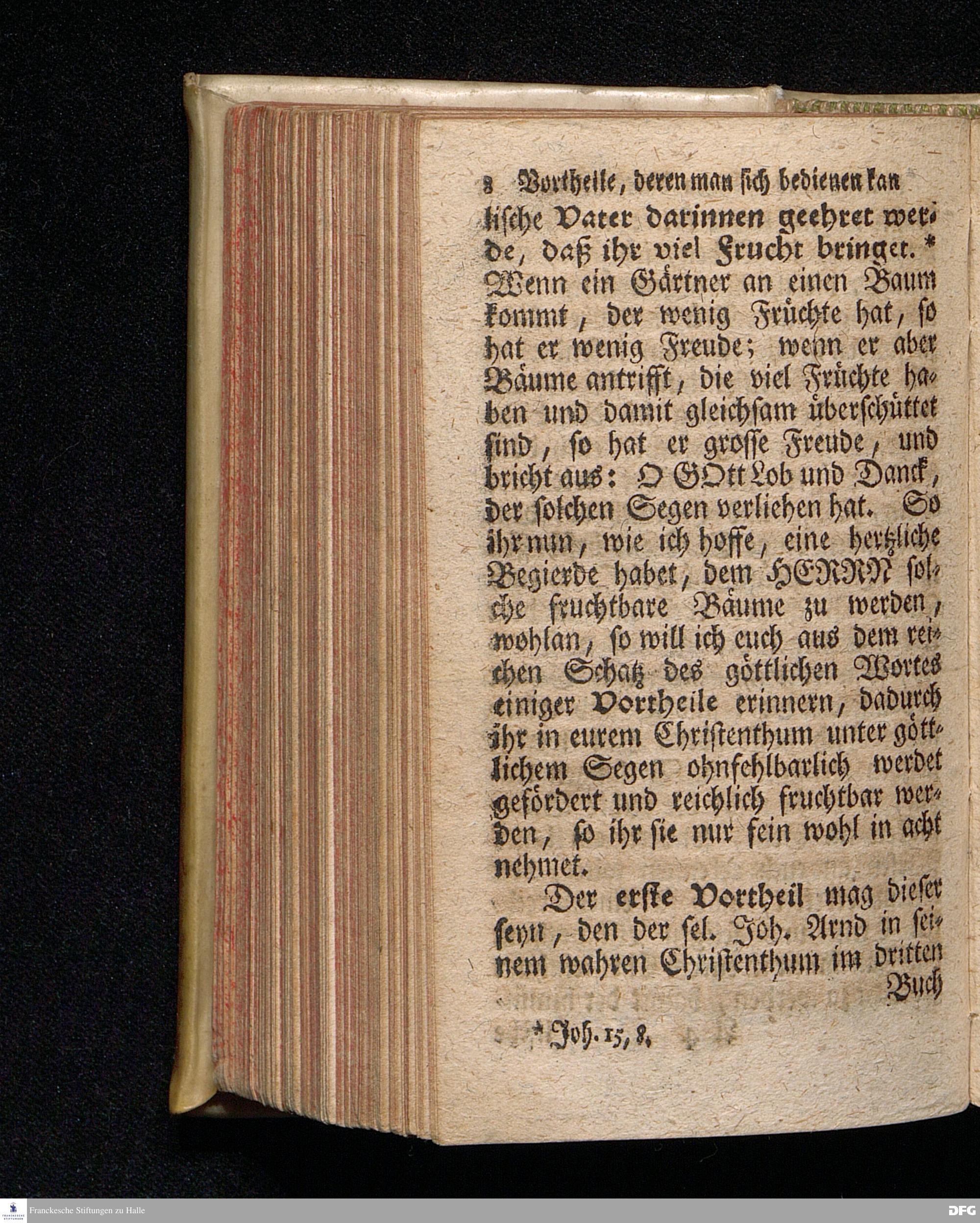Schriftmäßige Vortheile / deren man sich in der Ubung des wahren thätigen Christenthums, Und in dem von GOTT darinnen anbefohlnen Wachsthum unter göttlichem Segen mit Nutzen bedienen kan, Wie solche bey dem Wohl=Ehrw. Herrn Ambrosio Wirthen, Suden=Prediger im neuen Spital zum H.Geist, zu Nürnberg, einigen bey demselben gewöhnlicher massen versammleten Christlichen Personen den 7.Mart.Anno 1718.dem Innhalt nach vorgestellet worden von August Hermann Francken, S.Theol.Prof.Past.S.Vlric.& Gymn.Scholarcha. Der Jugend in den Schulen des Wäysen=Hauses nach dem Examine ausgetheilet den 24.Octobr.1722. HALLE, in Verlegung des Wäysen=Hauses, 1729.