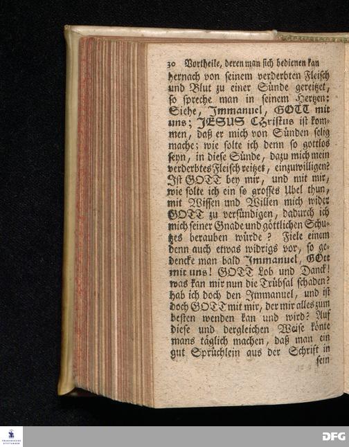 Schriftmäßige Vortheile / deren man sich in der Ubung des wahren thätigen Christenthums, Und in dem von GOTT darinnen anbefohlnen Wachsthum unter göttlichem Segen mit Nutzen bedienen kan, Wie solche bey dem Wohl=Ehrw. Herrn Ambrosio Wirthen, Suden=Prediger im neuen Spital zum H.Geist, zu Nürnberg, einigen bey demselben gewöhnlicher massen versammleten Christlichen Personen den 7.Mart.Anno 1718.dem Innhalt nach vorgestellet worden von August Hermann Francken, S.Theol.Prof.Past.S.Vlric.& Gymn.Scholarcha. Der Jugend in den Schulen des Wäysen=Hauses nach dem Examine ausgetheilet den 24.Octobr.1722. HALLE, in Verlegung des Wäysen=Hauses, 1729.