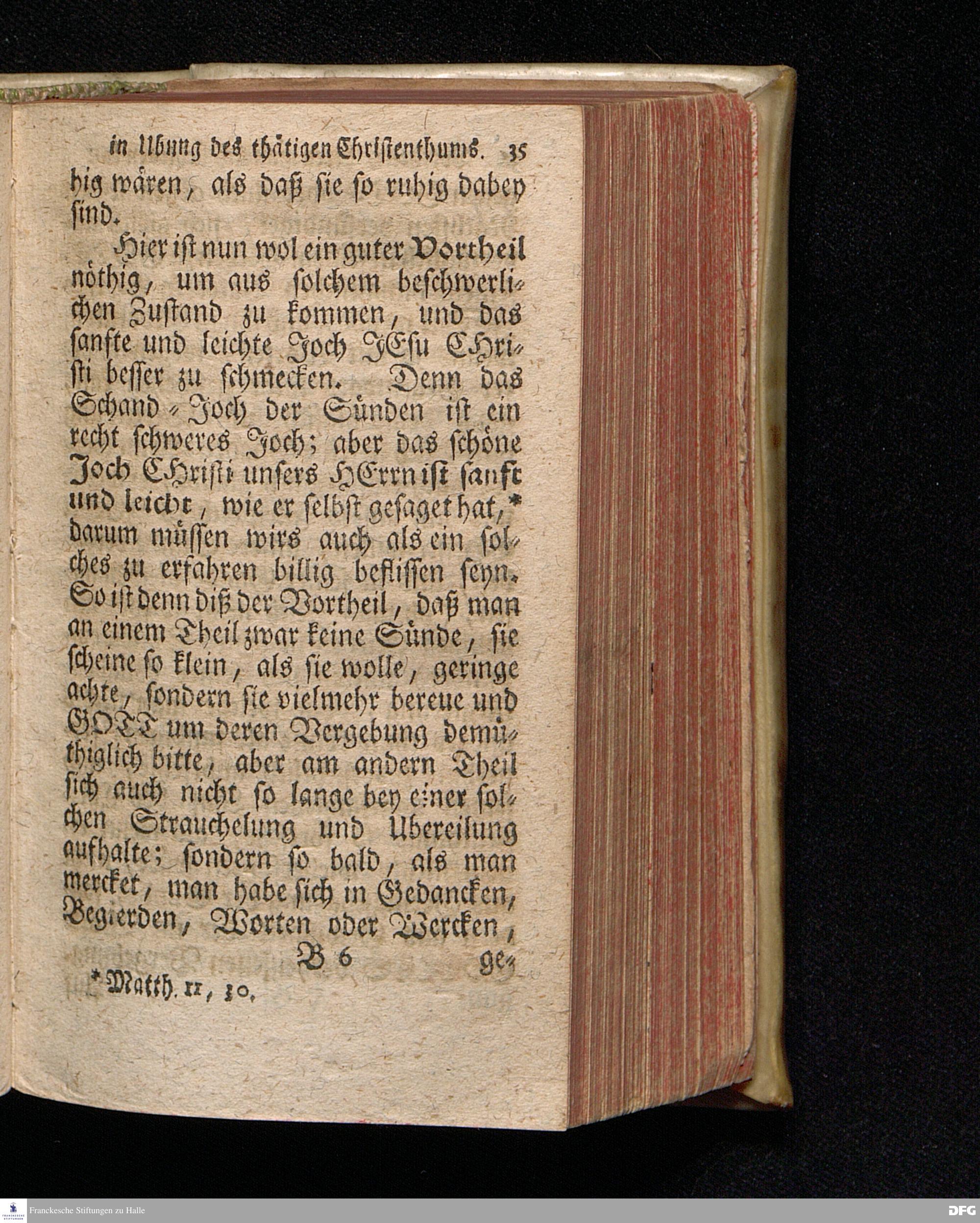 Schriftmäßige Vortheile / deren man sich in der Ubung des wahren thätigen Christenthums, Und in dem von GOTT darinnen anbefohlnen Wachsthum unter göttlichem Segen mit Nutzen bedienen kan, Wie solche bey dem Wohl=Ehrw. Herrn Ambrosio Wirthen, Suden=Prediger im neuen Spital zum H.Geist, zu Nürnberg, einigen bey demselben gewöhnlicher massen versammleten Christlichen Personen den 7.Mart.Anno 1718.dem Innhalt nach vorgestellet worden von August Hermann Francken, S.Theol.Prof.Past.S.Vlric.& Gymn.Scholarcha. Der Jugend in den Schulen des Wäysen=Hauses nach dem Examine ausgetheilet den 24.Octobr.1722. HALLE, in Verlegung des Wäysen=Hauses, 1729.