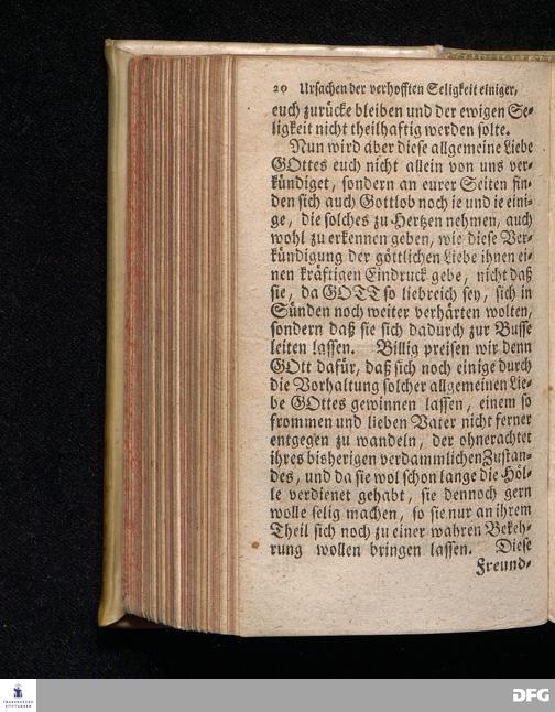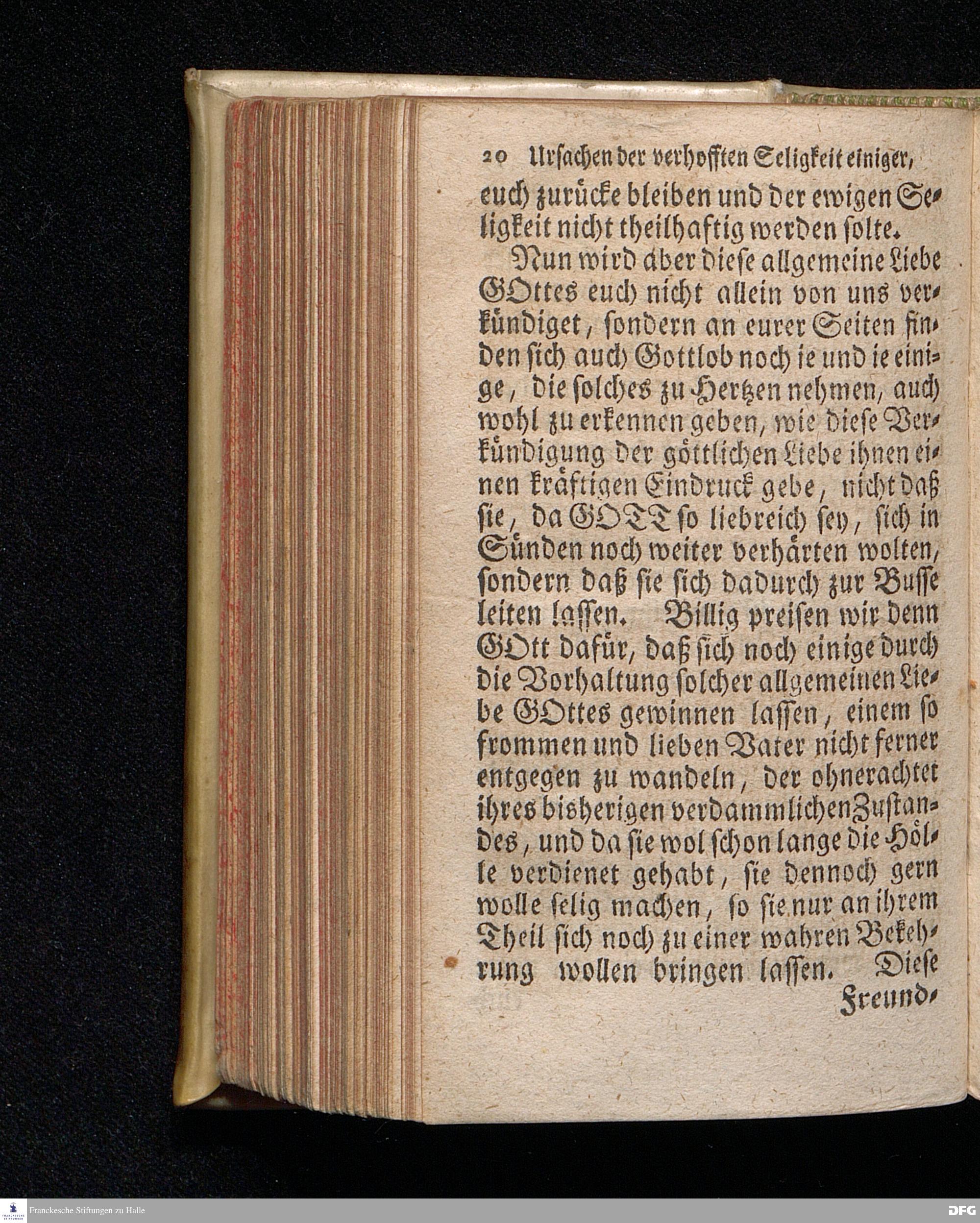 Die Ursachen der gehofften Seligkeit einiger, Und der besorgten Verdammniß vieler, Die sich äusserlich zur Christlichen Gemeine halten / Am andern Pfingst=Feyertage 1718. nach Anleitung des Evangel.Textes Joh.III, 16-21. In der S.Ulrichs=Kirche in Halle / mit stetiger Application auf die Zuhörer vorgestellet von August Hermann Francken / S.Th.Prof.& Past.zu S.Ulrich, und des Gymnasii Scholarcha. Andere Auflage. Der Jugend in den Schulen des Wäysenhauses, nach gehaltenem Examine, den 18.Jun. gedachten Jahrs, ausgetheilet. Halle, in Verlegung des Wäysenhauses. 1723.