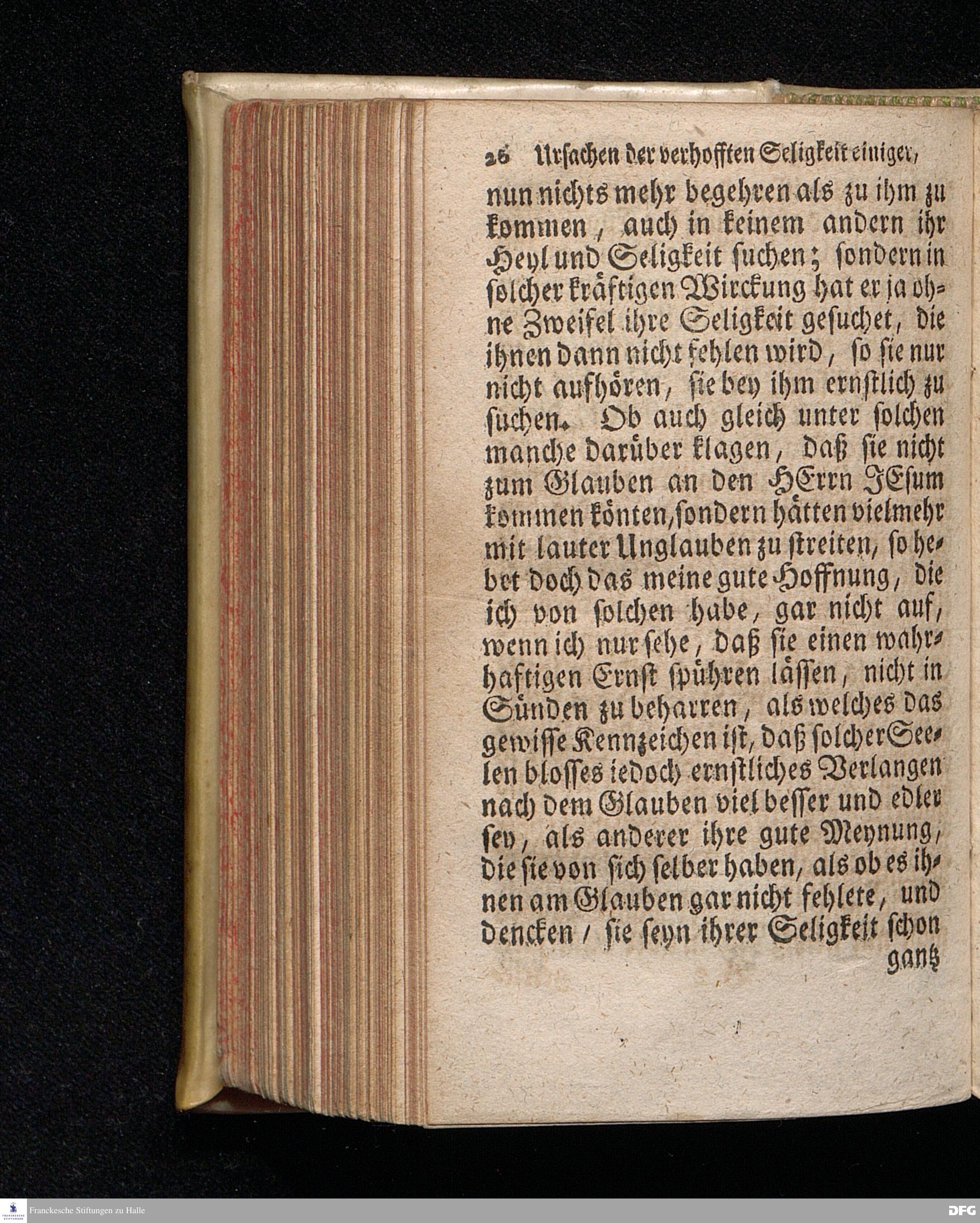 Die Ursachen der gehofften Seligkeit einiger, Und der besorgten Verdammniß vieler, Die sich äusserlich zur Christlichen Gemeine halten / Am andern Pfingst=Feyertage 1718. nach Anleitung des Evangel.Textes Joh.III, 16-21. In der S.Ulrichs=Kirche in Halle / mit stetiger Application auf die Zuhörer vorgestellet von August Hermann Francken / S.Th.Prof.& Past.zu S.Ulrich, und des Gymnasii Scholarcha. Andere Auflage. Der Jugend in den Schulen des Wäysenhauses, nach gehaltenem Examine, den 18.Jun. gedachten Jahrs, ausgetheilet. Halle, in Verlegung des Wäysenhauses. 1723.