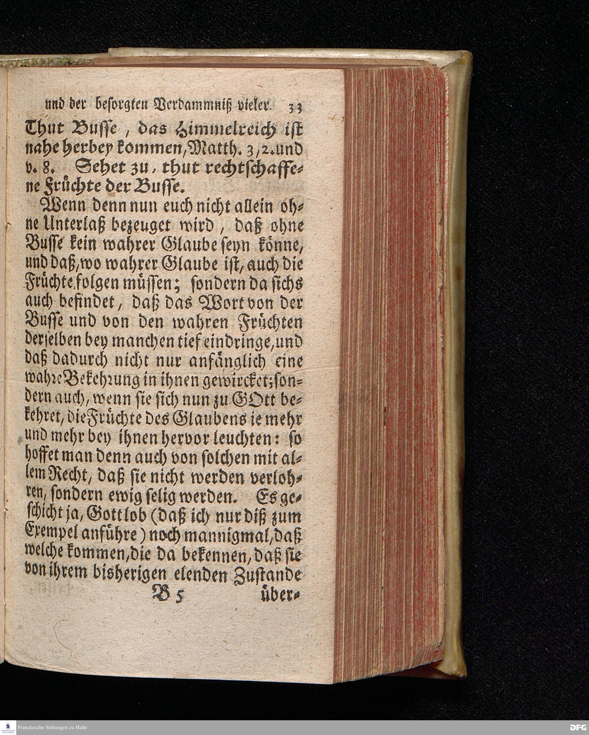 Die Ursachen der gehofften Seligkeit einiger, Und der besorgten Verdammniß vieler, Die sich äusserlich zur Christlichen Gemeine halten / Am andern Pfingst=Feyertage 1718. nach Anleitung des Evangel.Textes Joh.III, 16-21. In der S.Ulrichs=Kirche in Halle / mit stetiger Application auf die Zuhörer vorgestellet von August Hermann Francken / S.Th.Prof.& Past.zu S.Ulrich, und des Gymnasii Scholarcha. Andere Auflage. Der Jugend in den Schulen des Wäysenhauses, nach gehaltenem Examine, den 18.Jun. gedachten Jahrs, ausgetheilet. Halle, in Verlegung des Wäysenhauses. 1723.