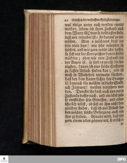 Die Ursachen der gehofften Seligkeit einiger, Und der besorgten Verdammniß vieler, Die sich äusserlich zur Christlichen Gemeine halten / Am andern Pfingst=Feyertage 1718. nach Anleitung des Evangel.Textes Joh.III, 16-21. In der S.Ulrichs=Kirche in Halle / mit stetiger Application auf die Zuhörer vorgestellet von August Hermann Francken / S.Th.Prof.& Past.zu S.Ulrich, und des Gymnasii Scholarcha. Andere Auflage. Der Jugend in den Schulen des Wäysenhauses, nach gehaltenem Examine, den 18.Jun. gedachten Jahrs, ausgetheilet. Halle, in Verlegung des Wäysenhauses. 1723.
