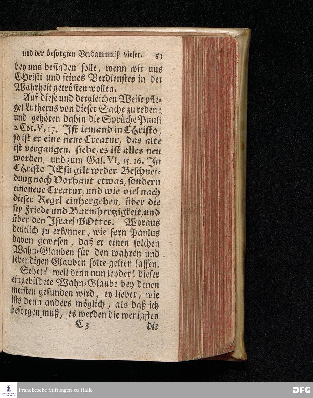 Die Ursachen der gehofften Seligkeit einiger, Und der besorgten Verdammniß vieler, Die sich äusserlich zur Christlichen Gemeine halten / Am andern Pfingst=Feyertage 1718. nach Anleitung des Evangel.Textes Joh.III, 16-21. In der S.Ulrichs=Kirche in Halle / mit stetiger Application auf die Zuhörer vorgestellet von August Hermann Francken / S.Th.Prof.& Past.zu S.Ulrich, und des Gymnasii Scholarcha. Andere Auflage. Der Jugend in den Schulen des Wäysenhauses, nach gehaltenem Examine, den 18.Jun. gedachten Jahrs, ausgetheilet. Halle, in Verlegung des Wäysenhauses. 1723.
