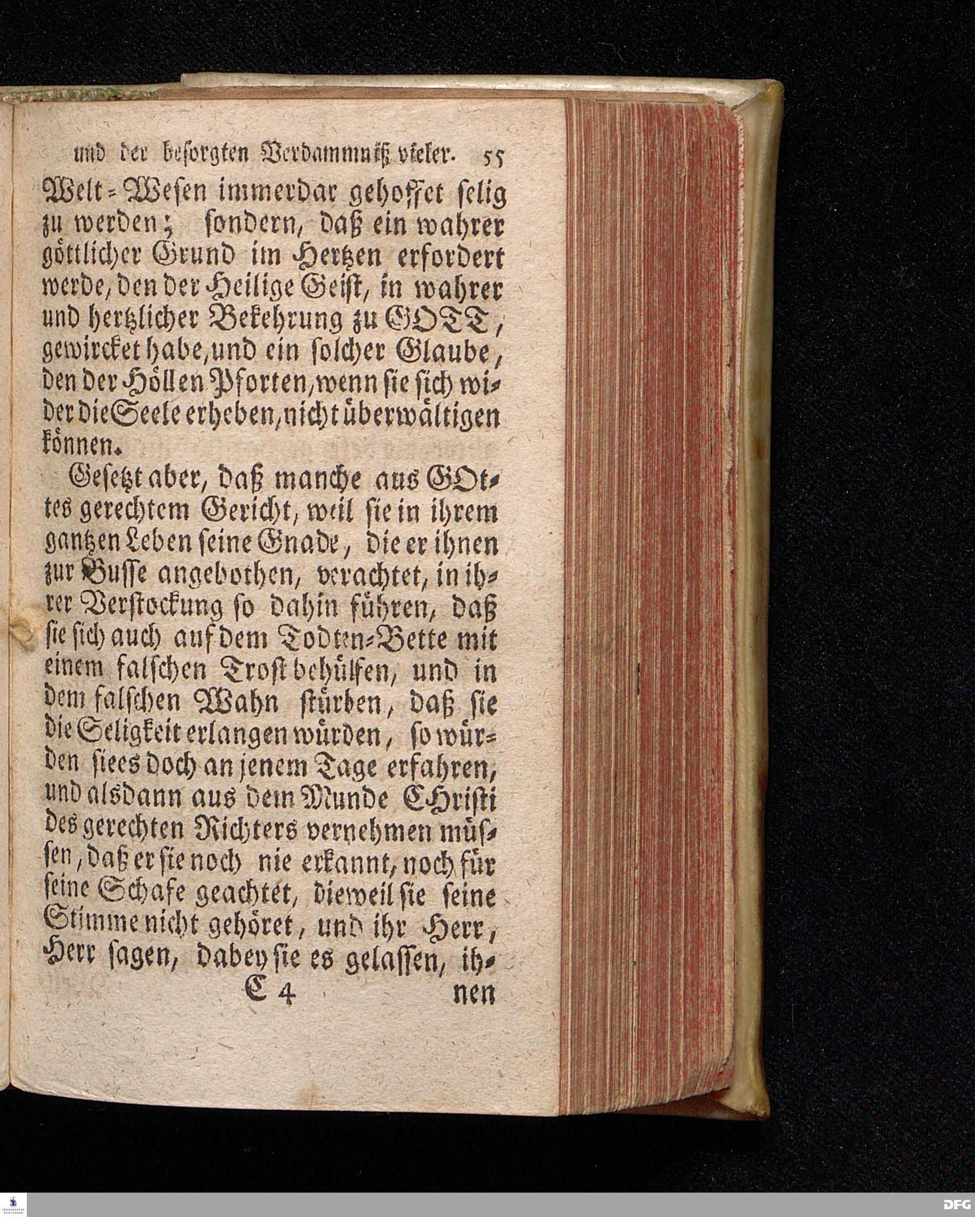 Die Ursachen der gehofften Seligkeit einiger, Und der besorgten Verdammniß vieler, Die sich äusserlich zur Christlichen Gemeine halten / Am andern Pfingst=Feyertage 1718. nach Anleitung des Evangel.Textes Joh.III, 16-21. In der S.Ulrichs=Kirche in Halle / mit stetiger Application auf die Zuhörer vorgestellet von August Hermann Francken / S.Th.Prof.& Past.zu S.Ulrich, und des Gymnasii Scholarcha. Andere Auflage. Der Jugend in den Schulen des Wäysenhauses, nach gehaltenem Examine, den 18.Jun. gedachten Jahrs, ausgetheilet. Halle, in Verlegung des Wäysenhauses. 1723.