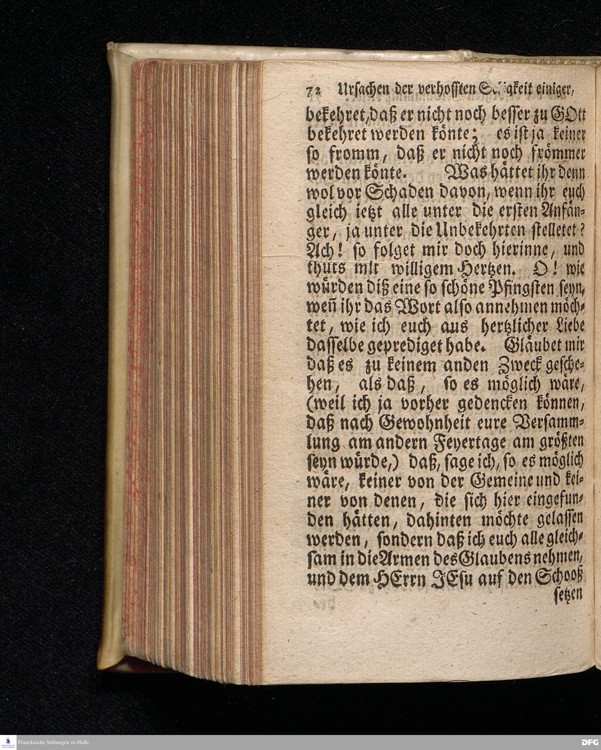 Die Ursachen der gehofften Seligkeit einiger, Und der besorgten Verdammniß vieler, Die sich äusserlich zur Christlichen Gemeine halten / Am andern Pfingst=Feyertage 1718. nach Anleitung des Evangel.Textes Joh.III, 16-21. In der S.Ulrichs=Kirche in Halle / mit stetiger Application auf die Zuhörer vorgestellet von August Hermann Francken / S.Th.Prof.& Past.zu S.Ulrich, und des Gymnasii Scholarcha. Andere Auflage. Der Jugend in den Schulen des Wäysenhauses, nach gehaltenem Examine, den 18.Jun. gedachten Jahrs, ausgetheilet. Halle, in Verlegung des Wäysenhauses. 1723.