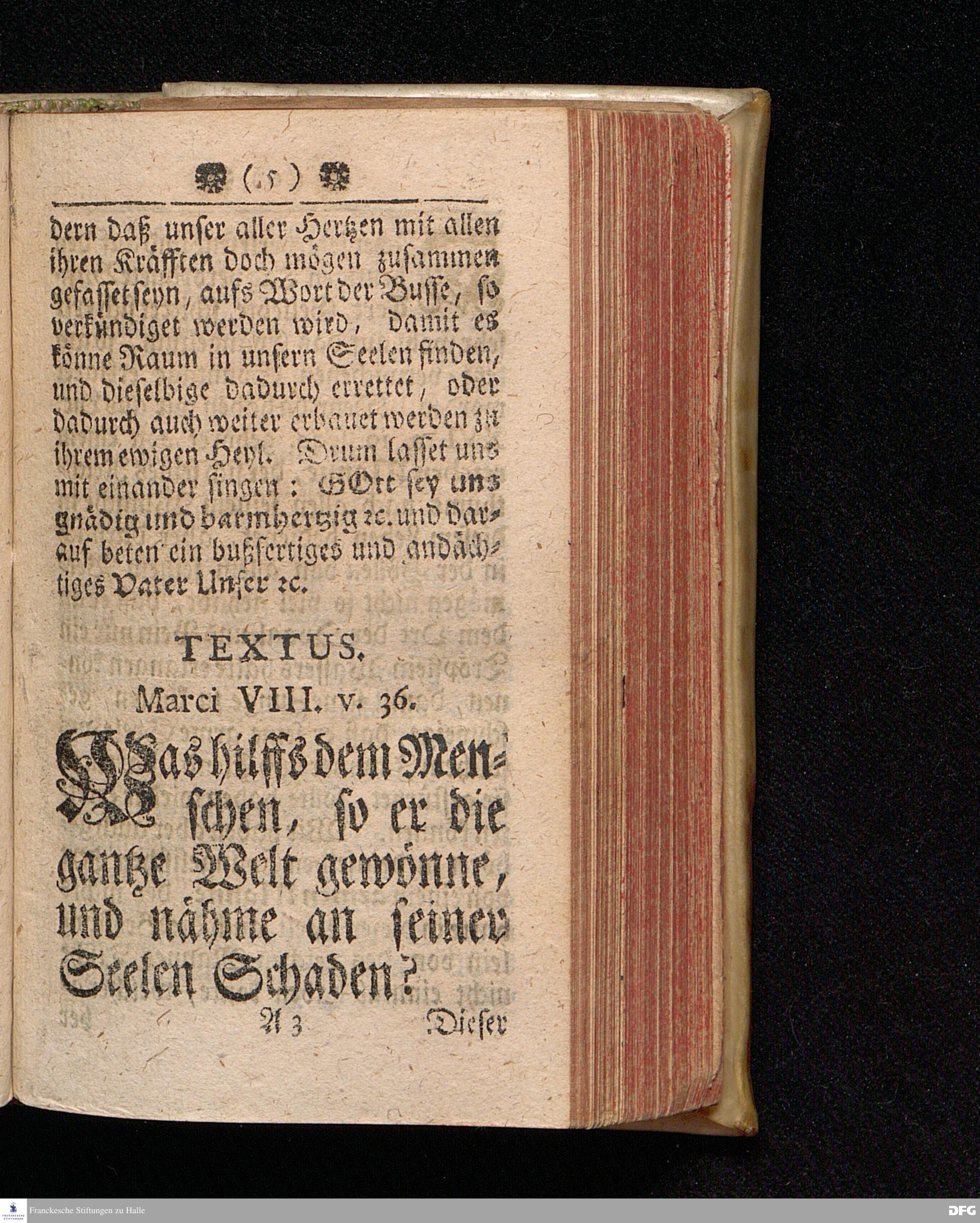 Der Hohe Werth der Seelen / In einer Buß=Predigt über Marc.VIII, 36. Am 5.Jun.MDCCXIX. In der St.Georgen=Kirche zu Glaucha an Halle vorgestellet, Von Aug.Herm.Francken, SS.Theol.Prof.und Past. zu St.Ulrich, und des hiesigen Gymnasii Schol. HALLE, In Verleg. des Waysen=Hauses. MDCCXIX.