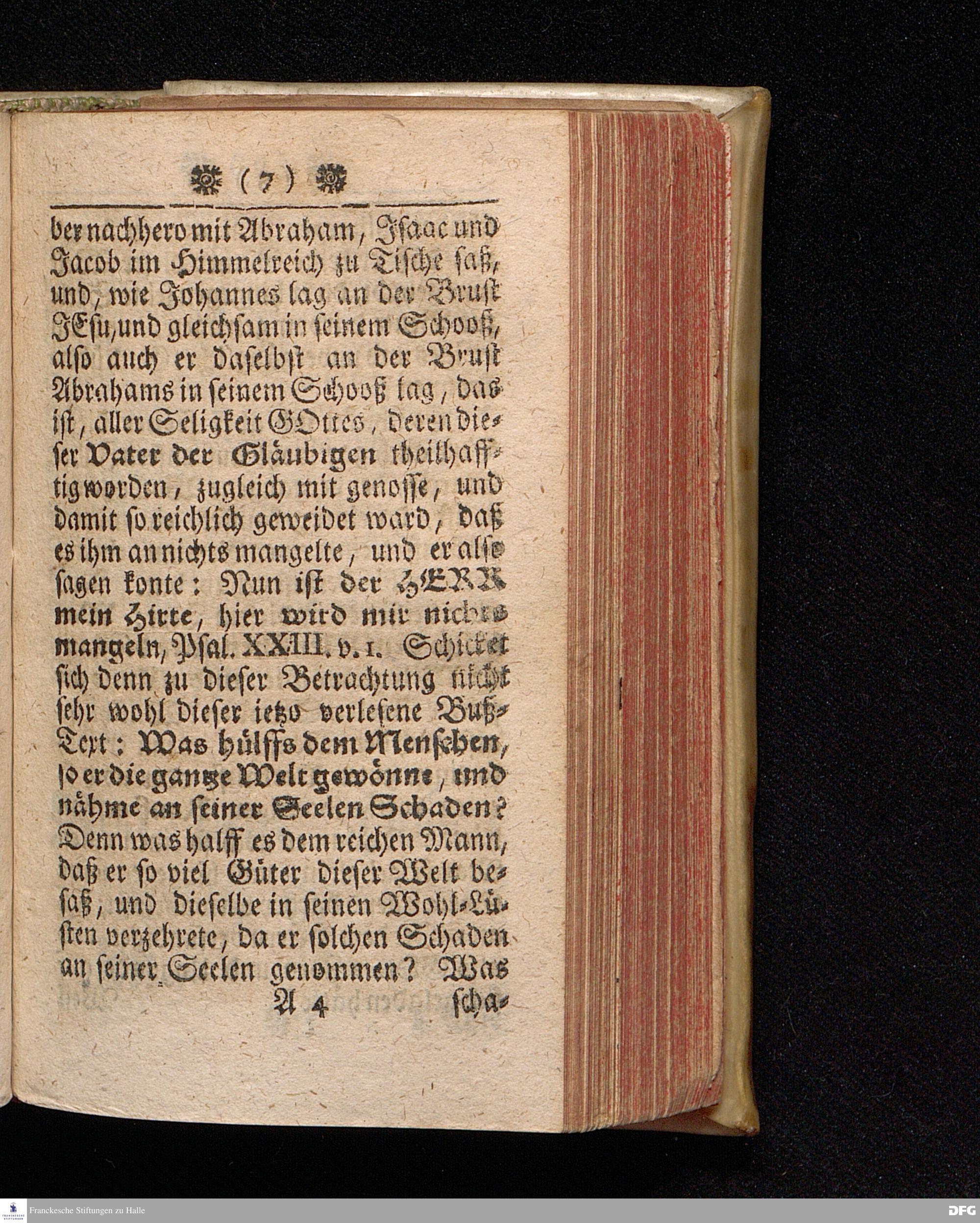 Der Hohe Werth der Seelen / In einer Buß=Predigt über Marc.VIII, 36. Am 5.Jun.MDCCXIX. In der St.Georgen=Kirche zu Glaucha an Halle vorgestellet, Von Aug.Herm.Francken, SS.Theol.Prof.und Past. zu St.Ulrich, und des hiesigen Gymnasii Schol. HALLE, In Verleg. des Waysen=Hauses. MDCCXIX.