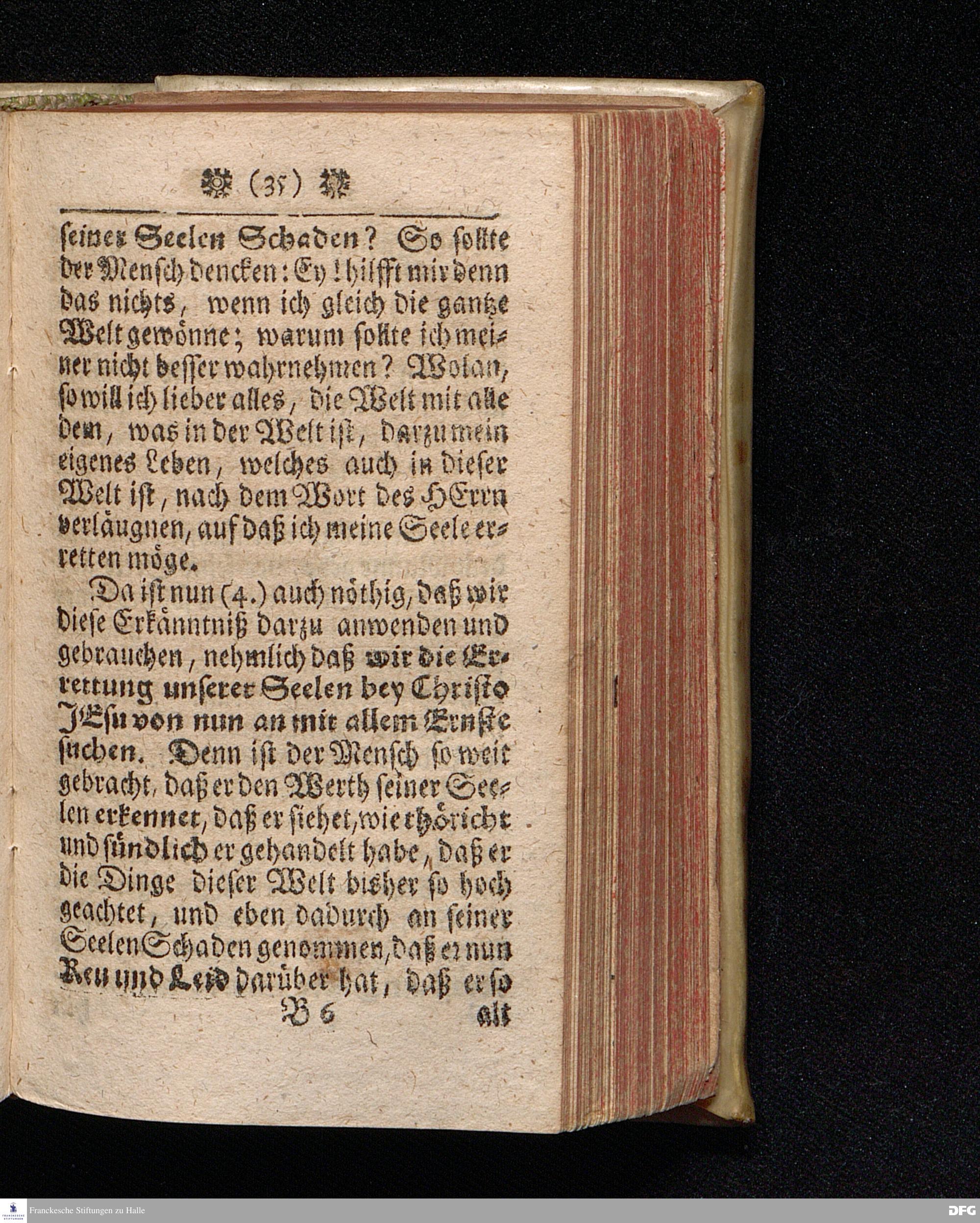 Der Hohe Werth der Seelen / In einer Buß=Predigt über Marc.VIII, 36. Am 5.Jun.MDCCXIX. In der St.Georgen=Kirche zu Glaucha an Halle vorgestellet, Von Aug.Herm.Francken, SS.Theol.Prof.und Past. zu St.Ulrich, und des hiesigen Gymnasii Schol. HALLE, In Verleg. des Waysen=Hauses. MDCCXIX.