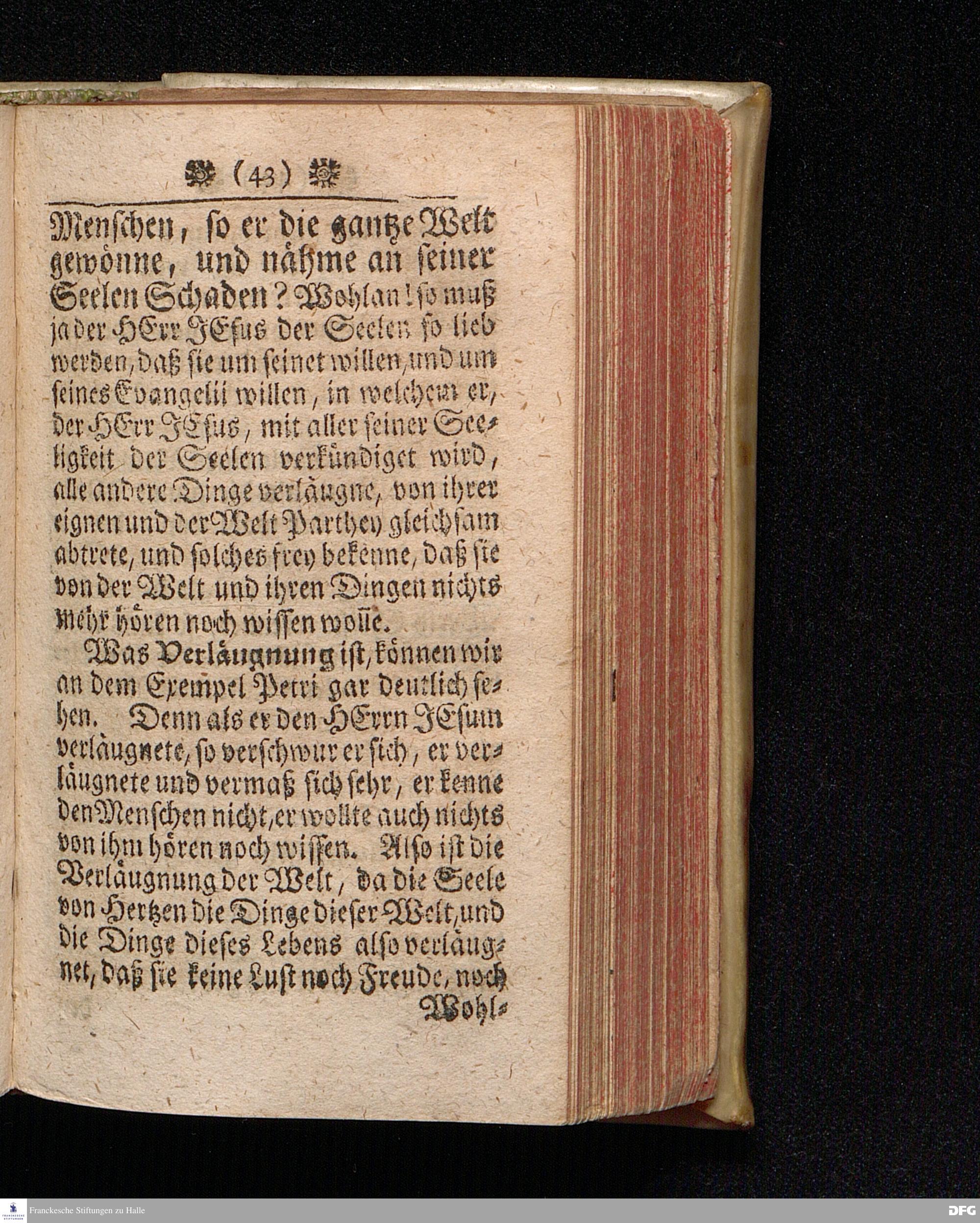 Der Hohe Werth der Seelen / In einer Buß=Predigt über Marc.VIII, 36. Am 5.Jun.MDCCXIX. In der St.Georgen=Kirche zu Glaucha an Halle vorgestellet, Von Aug.Herm.Francken, SS.Theol.Prof.und Past. zu St.Ulrich, und des hiesigen Gymnasii Schol. HALLE, In Verleg. des Waysen=Hauses. MDCCXIX.