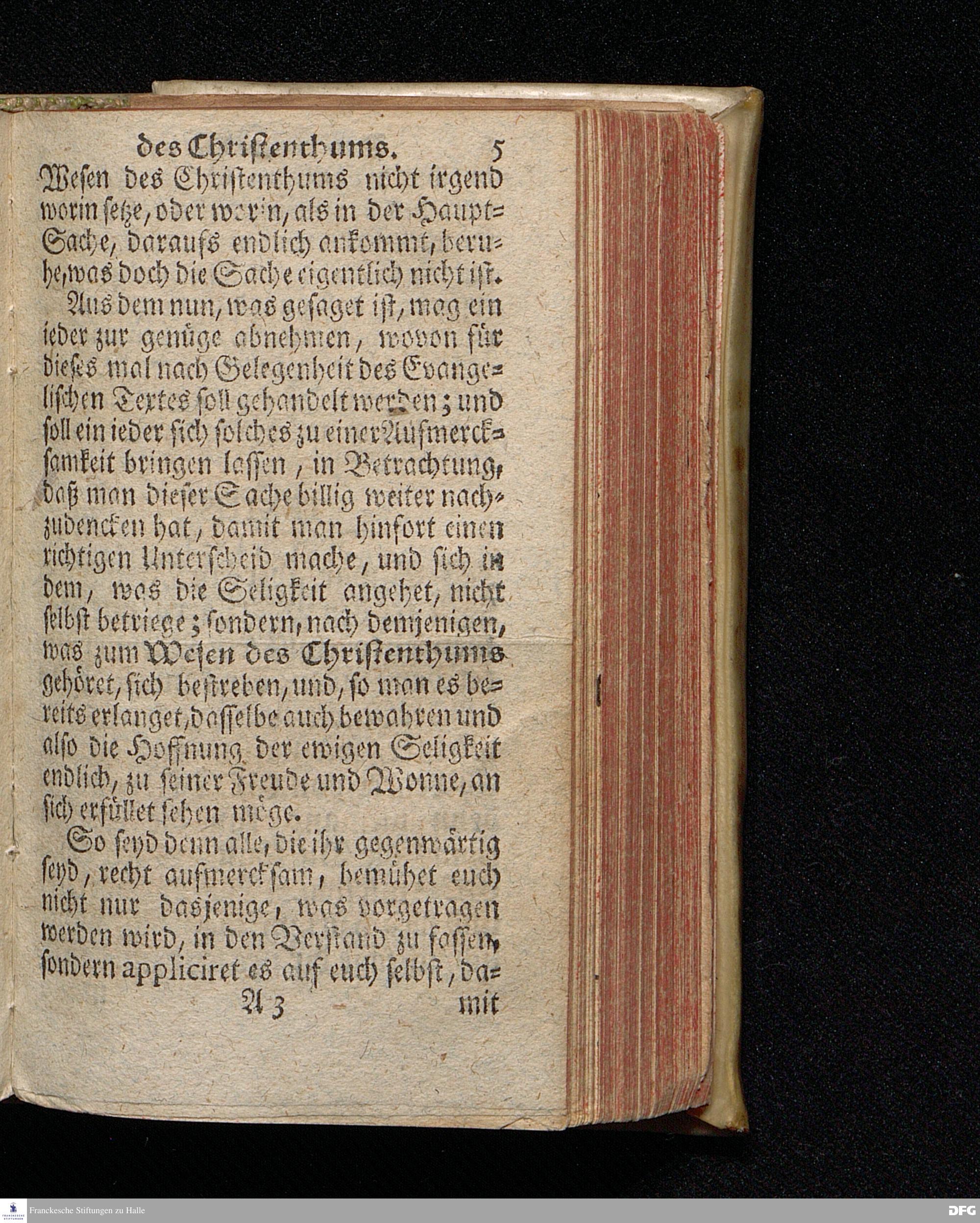 Das Rechte Wesen Des Christenthums, Aus dem Evangelischen Text Joh.III, 1-15. Am Fest der H.Dreyeinigkeit 1714. In der St.Georgen=Kirche zu Glaucha an Halle vorgestellet von August Hermann Francken / S.Theol.Prof.Ord.& Past. Andere Auflage. HALLE / In Verlegung des Wäysen=Hauses. 1729.
