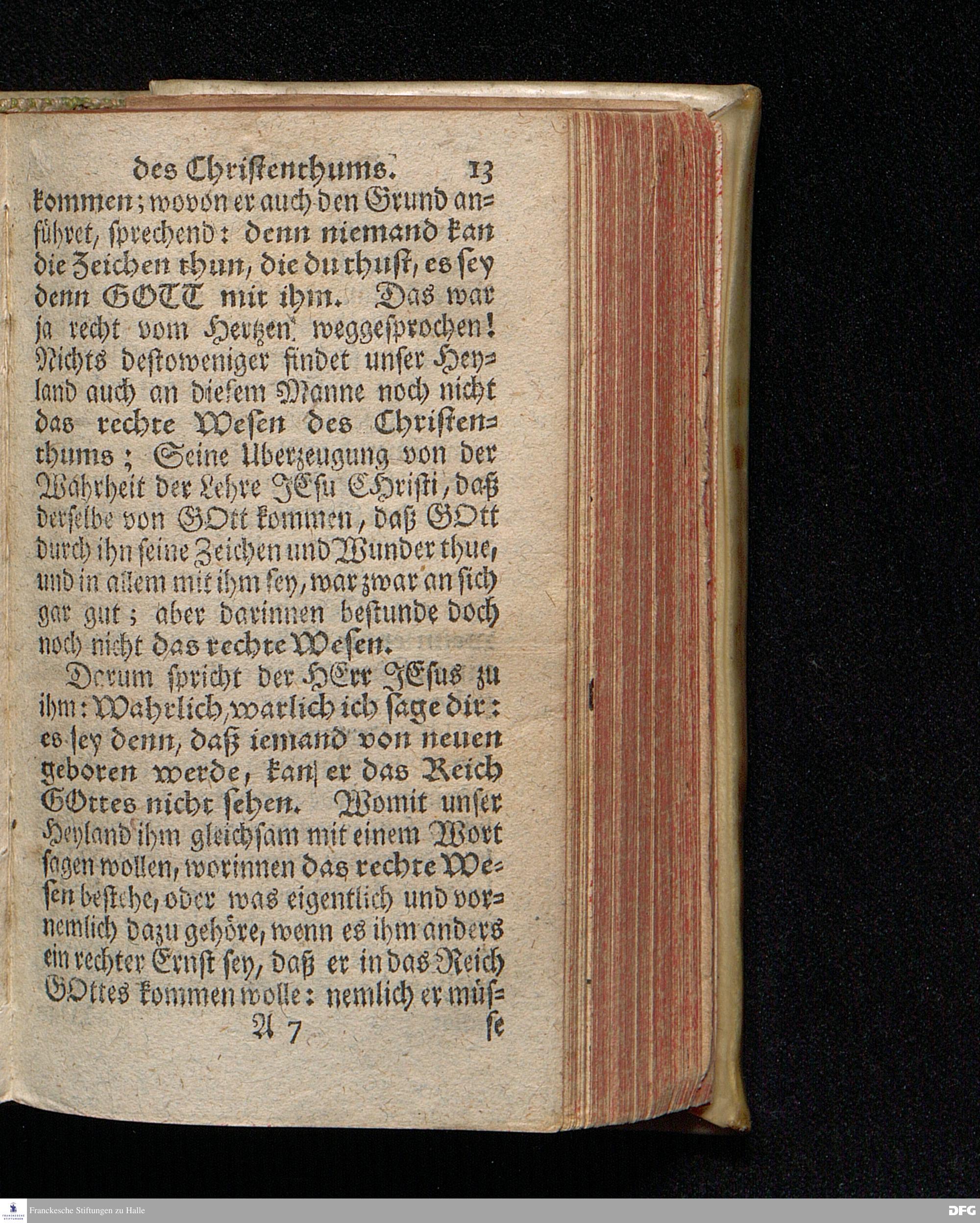 Das Rechte Wesen Des Christenthums, Aus dem Evangelischen Text Joh.III, 1-15. Am Fest der H.Dreyeinigkeit 1714. In der St.Georgen=Kirche zu Glaucha an Halle vorgestellet von August Hermann Francken / S.Theol.Prof.Ord.& Past. Andere Auflage. HALLE / In Verlegung des Wäysen=Hauses. 1729.