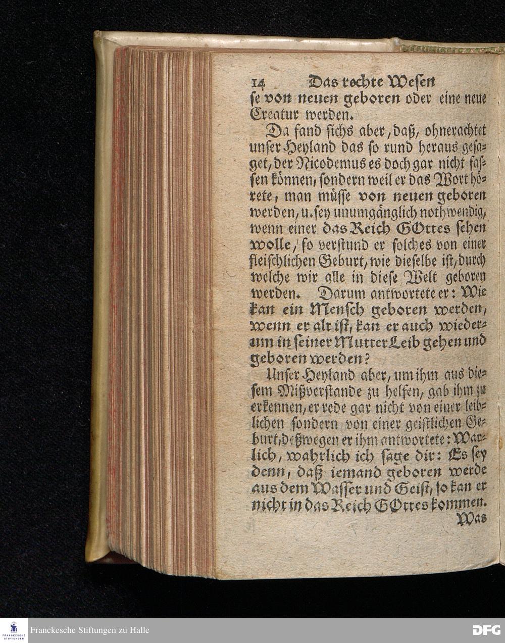 Das Rechte Wesen Des Christenthums, Aus dem Evangelischen Text Joh.III, 1-15. Am Fest der H.Dreyeinigkeit 1714. In der St.Georgen=Kirche zu Glaucha an Halle vorgestellet von August Hermann Francken / S.Theol.Prof.Ord.& Past. Andere Auflage. HALLE / In Verlegung des Wäysen=Hauses. 1729.