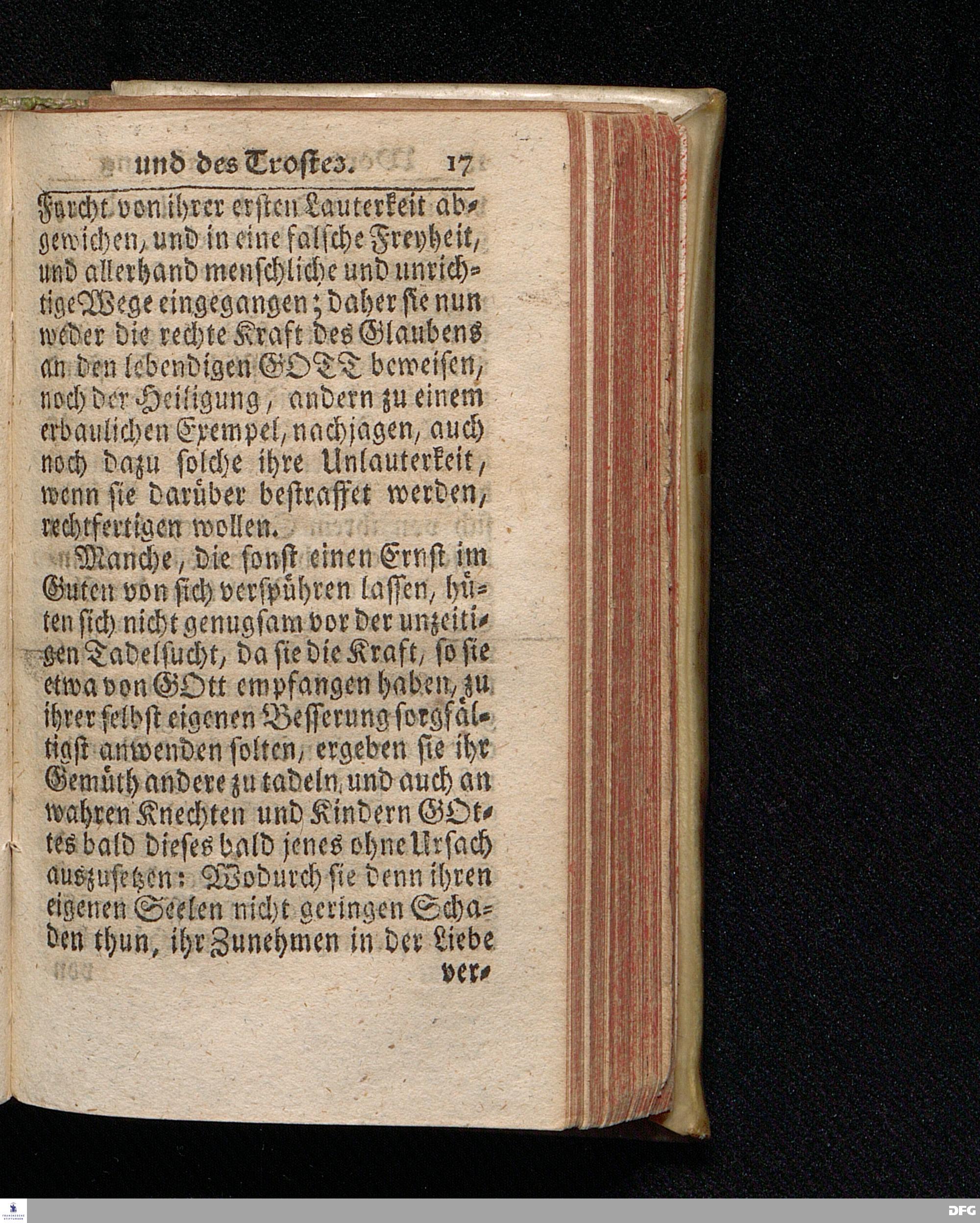 Ein Wort der Ermahnung und des Trostes An Die in einer namhaften Stadt Befindliche GOtt suchende und GOtt liebende oder doch von der Wahrheit die in Christo JEsu ist, wenigstens einiger Massen, überzeugte Seelen / aus Christlichem Wohlmeynen, nach einigem Aufenthalt daselbst, abgelassen aus Halle den 7.Jan.1710. von August Hermann Francken. Andere Auflage. [Bibelzitat.] HALLE, In Verlegung des Wäysenhauses. 1723.