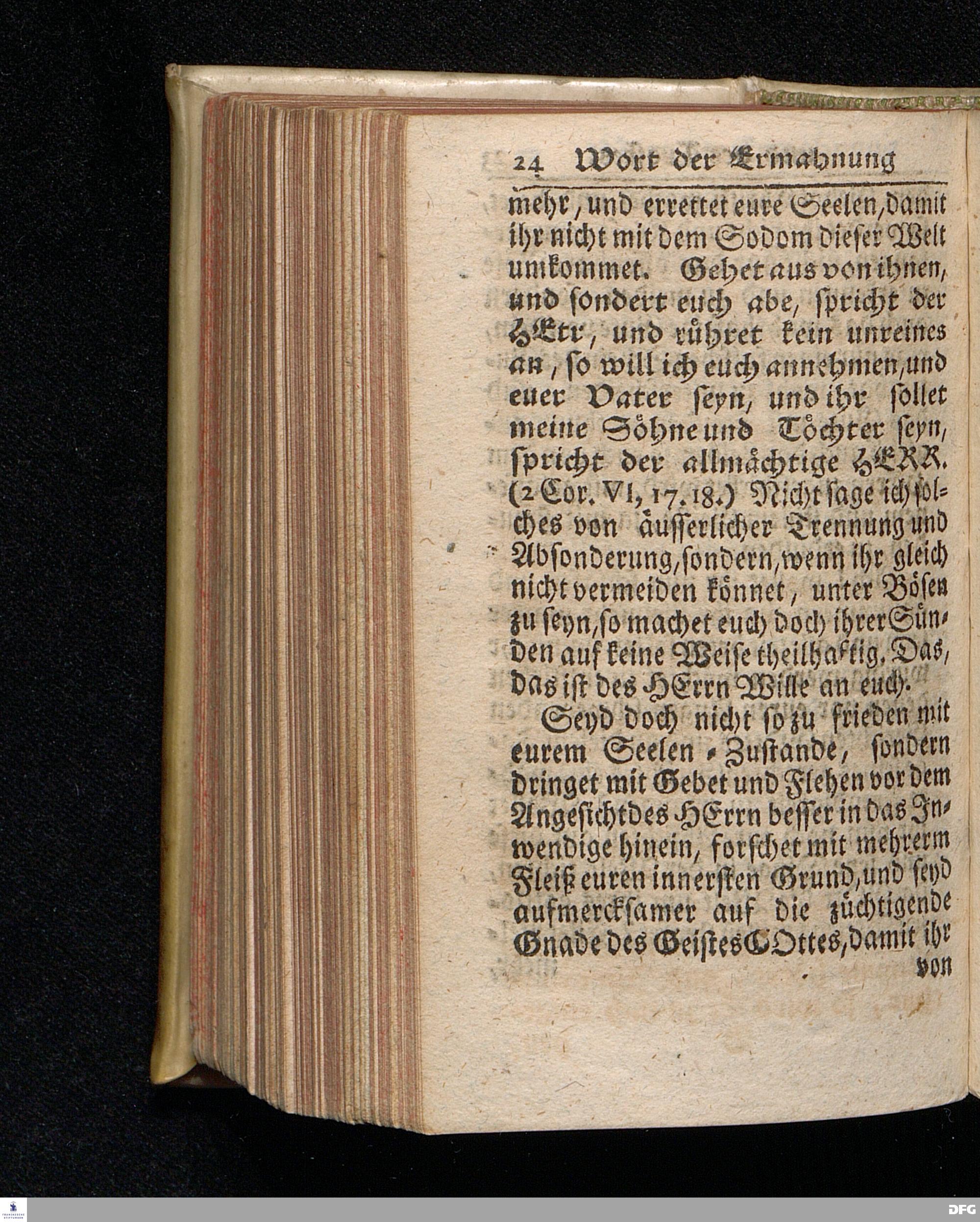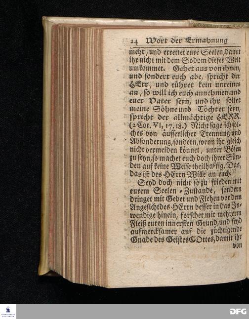 Ein Wort der Ermahnung und des Trostes An Die in einer namhaften Stadt Befindliche GOtt suchende und GOtt liebende oder doch von der Wahrheit die in Christo JEsu ist, wenigstens einiger Massen, überzeugte Seelen / aus Christlichem Wohlmeynen, nach einigem Aufenthalt daselbst, abgelassen aus Halle den 7.Jan.1710. von August Hermann Francken. Andere Auflage. [Bibelzitat.] HALLE, In Verlegung des Wäysenhauses. 1723.