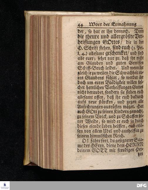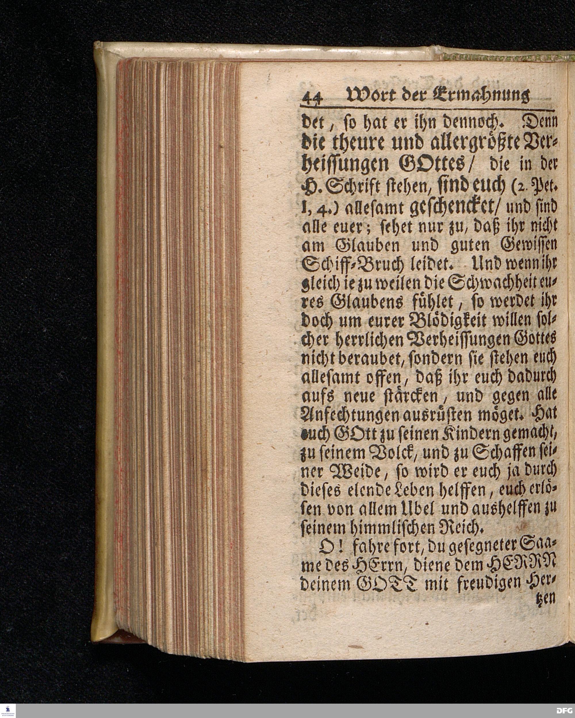 Ein Wort der Ermahnung und des Trostes An Die in einer namhaften Stadt Befindliche GOtt suchende und GOtt liebende oder doch von der Wahrheit die in Christo JEsu ist, wenigstens einiger Massen, überzeugte Seelen / aus Christlichem Wohlmeynen, nach einigem Aufenthalt daselbst, abgelassen aus Halle den 7.Jan.1710. von August Hermann Francken. Andere Auflage. [Bibelzitat.] HALLE, In Verlegung des Wäysenhauses. 1723.