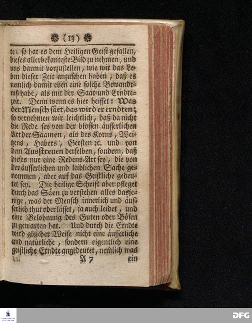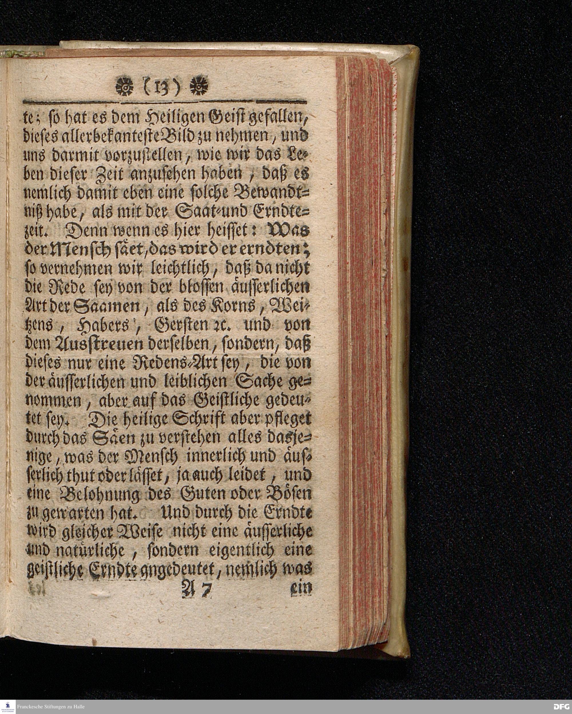 Das Zeitliche Leben als eine Saat=Zeit / In einer Predigt über Galat.VI, 7.8. Am XV.Sonntage nach Trinit. Anno 1709. In der Schul=Kirche zu Halle / vorgestellet von Aug.Herrm.[!] Francken / S.Th.Prof.Ord.und Past. Dritte Auflage. HALLE, In Verlegung des Wäysenhauses. MDCCXXIX.