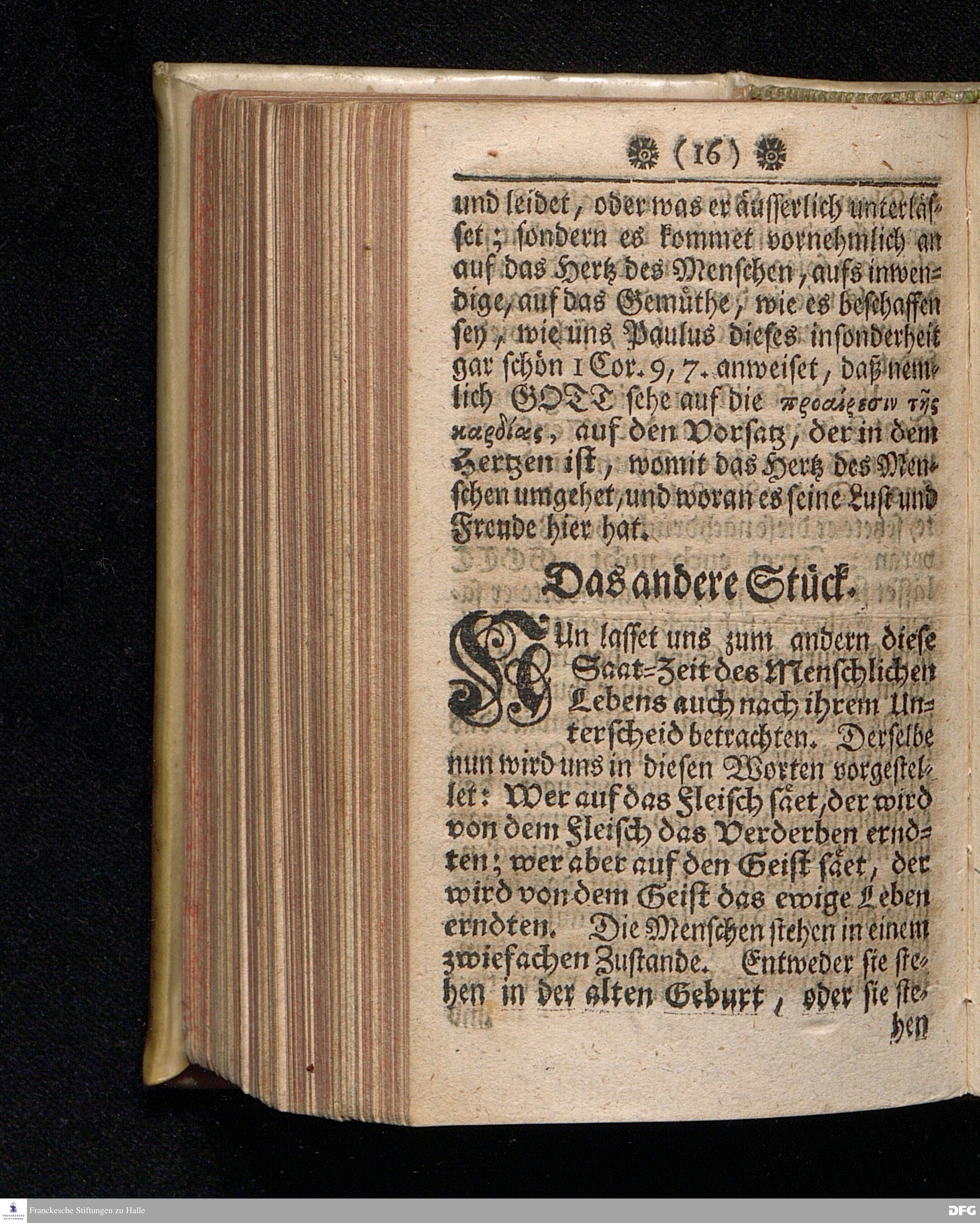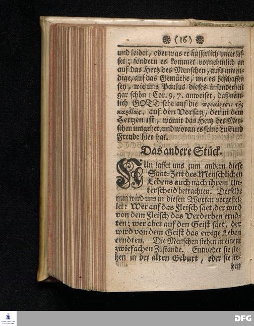 Das Zeitliche Leben als eine Saat=Zeit / In einer Predigt über Galat.VI, 7.8. Am XV.Sonntage nach Trinit. Anno 1709. In der Schul=Kirche zu Halle / vorgestellet von Aug.Herrm.[!] Francken / S.Th.Prof.Ord.und Past. Dritte Auflage. HALLE, In Verlegung des Wäysenhauses. MDCCXXIX.