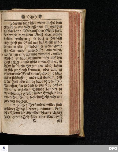 Das Zeitliche Leben als eine Saat=Zeit / In einer Predigt über Galat.VI, 7.8. Am XV.Sonntage nach Trinit. Anno 1709. In der Schul=Kirche zu Halle / vorgestellet von Aug.Herrm.[!] Francken / S.Th.Prof.Ord.und Past. Dritte Auflage. HALLE, In Verlegung des Wäysenhauses. MDCCXXIX.