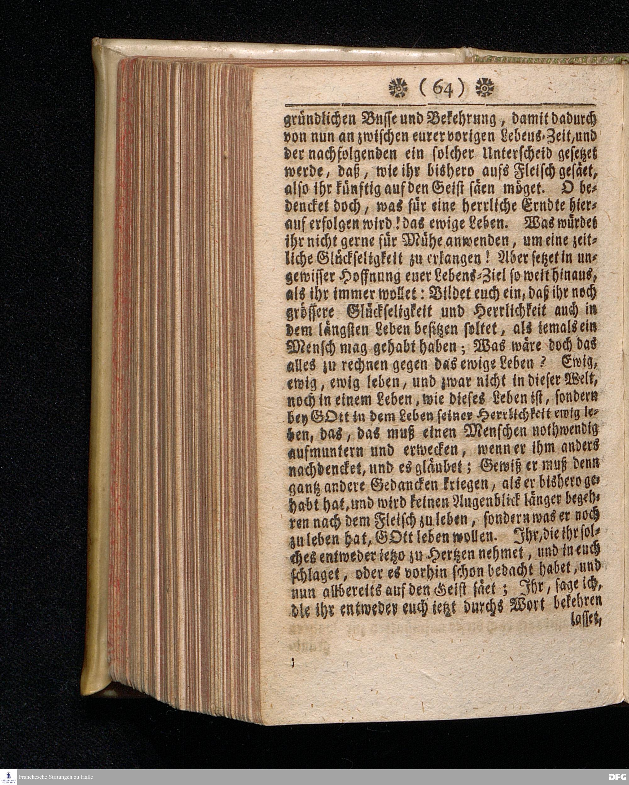 Das Zeitliche Leben als eine Saat=Zeit / In einer Predigt über Galat.VI, 7.8. Am XV.Sonntage nach Trinit. Anno 1709. In der Schul=Kirche zu Halle / vorgestellet von Aug.Herrm.[!] Francken / S.Th.Prof.Ord.und Past. Dritte Auflage. HALLE, In Verlegung des Wäysenhauses. MDCCXXIX.