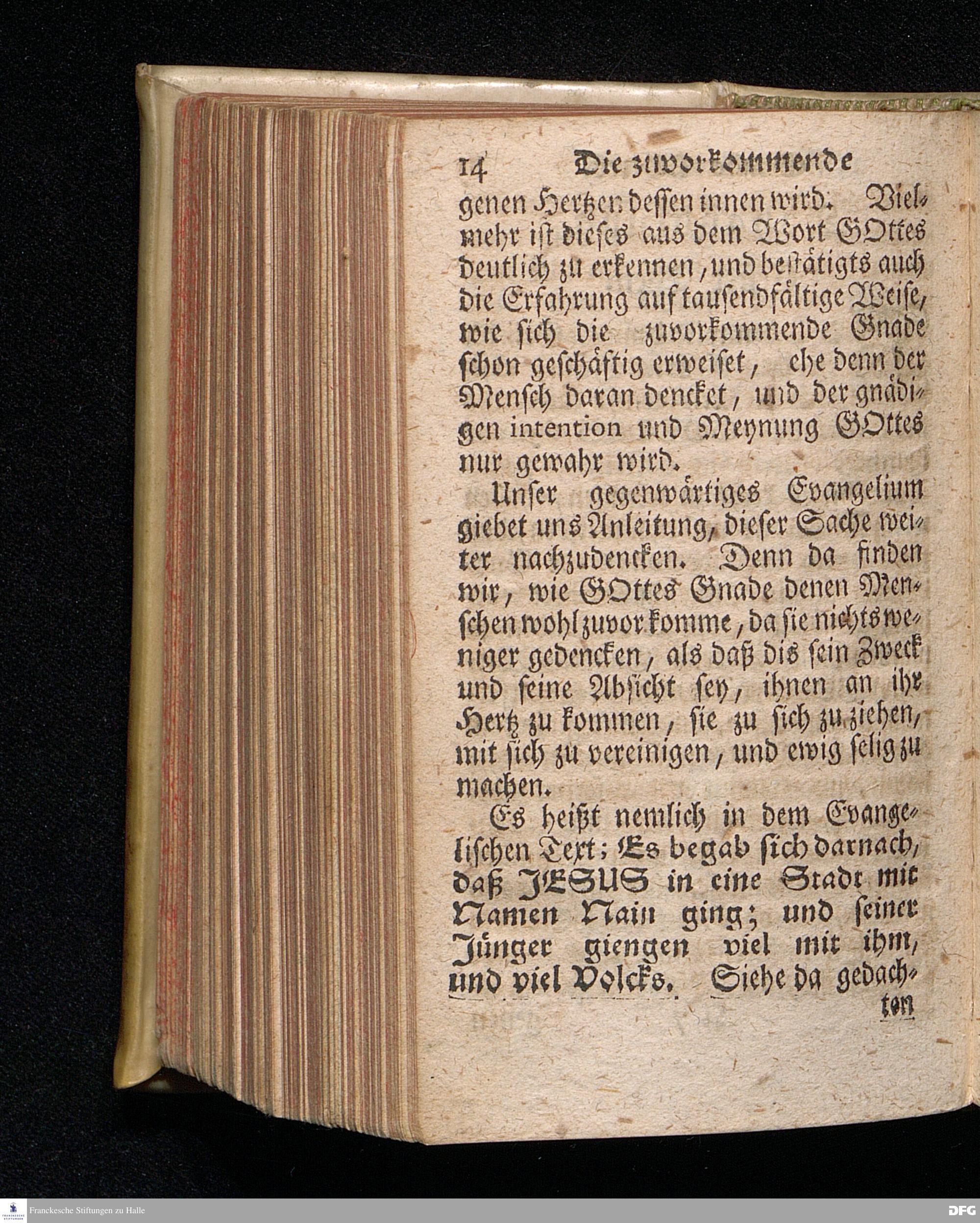 Die Zuvorkommende Gnade GOttes, In einer Vor dem hier versammleten Hoch=Fürstl.Dessauischen Regiment am XVI.Sonntag nach Trinit.1721. gehaltenen Predigt aus dem ordentlichen Evangelio Luc.VII, 11-17. In der Schul=Kirche zu Halle vorgestellet von August Hermann Francken, S.Theol.Prof.Past.Vlr.& Schol. HALLE, gedruckt im Wäysen=Hause, 1729.