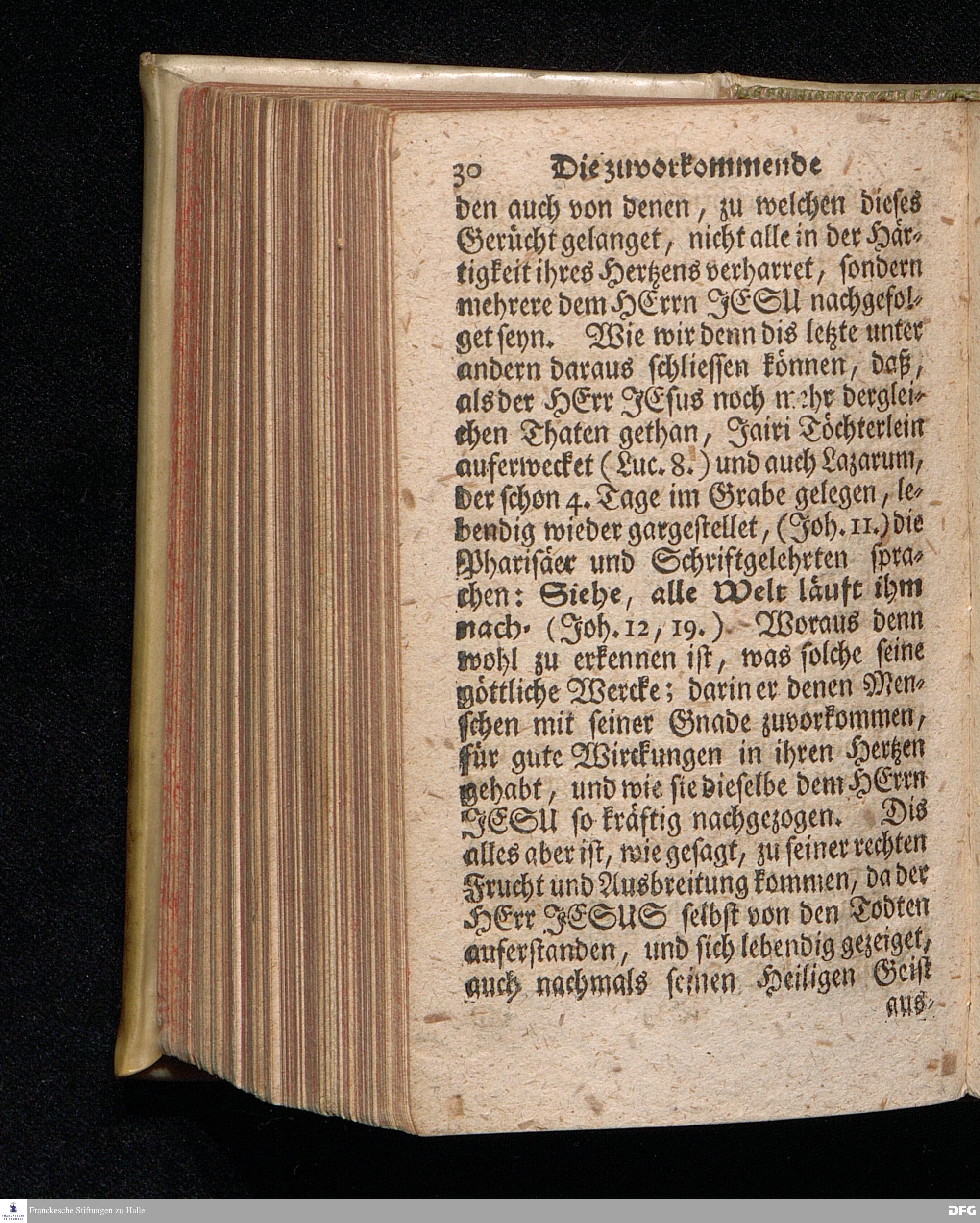 Die Zuvorkommende Gnade GOttes, In einer Vor dem hier versammleten Hoch=Fürstl.Dessauischen Regiment am XVI.Sonntag nach Trinit.1721. gehaltenen Predigt aus dem ordentlichen Evangelio Luc.VII, 11-17. In der Schul=Kirche zu Halle vorgestellet von August Hermann Francken, S.Theol.Prof.Past.Vlr.& Schol. HALLE, gedruckt im Wäysen=Hause, 1729.